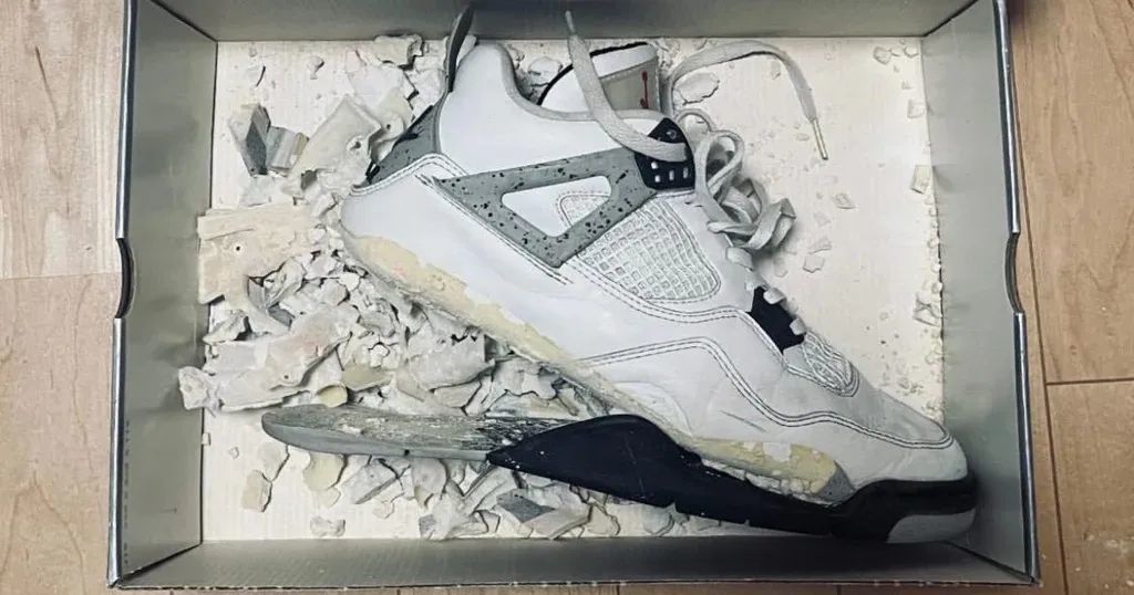 然而,这么好的材料也有缺点:在保存不当时,它比其他鞋底材料更容易发生降解。降解会破坏材料的内部结构,让鞋底失去原有的强度。发生降解的鞋底外观看起来可能变化不大,但它已经无法再承受压力,甚至轻轻一踩就会彻底粉碎。