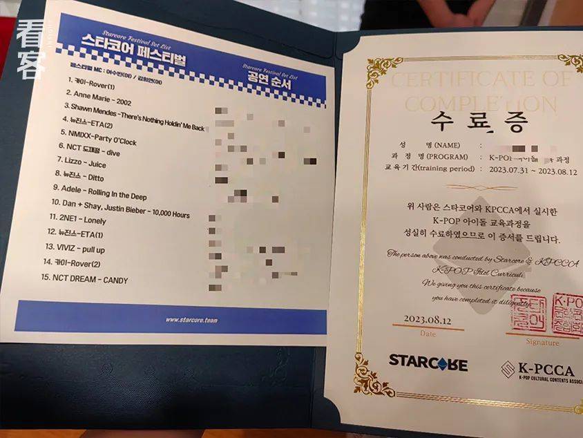 完成所有课程和公演后,方玥得到了学院给的结业证