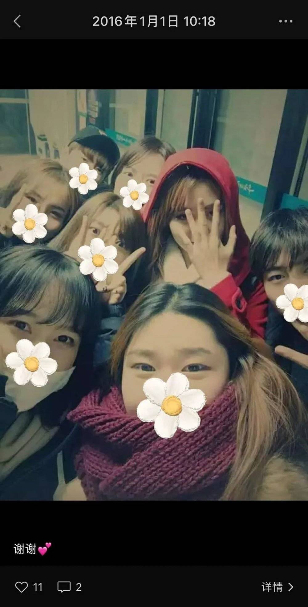2015年12月31日,郭晴和认识的所有华裔练习生一起跨年,发了朋友圈