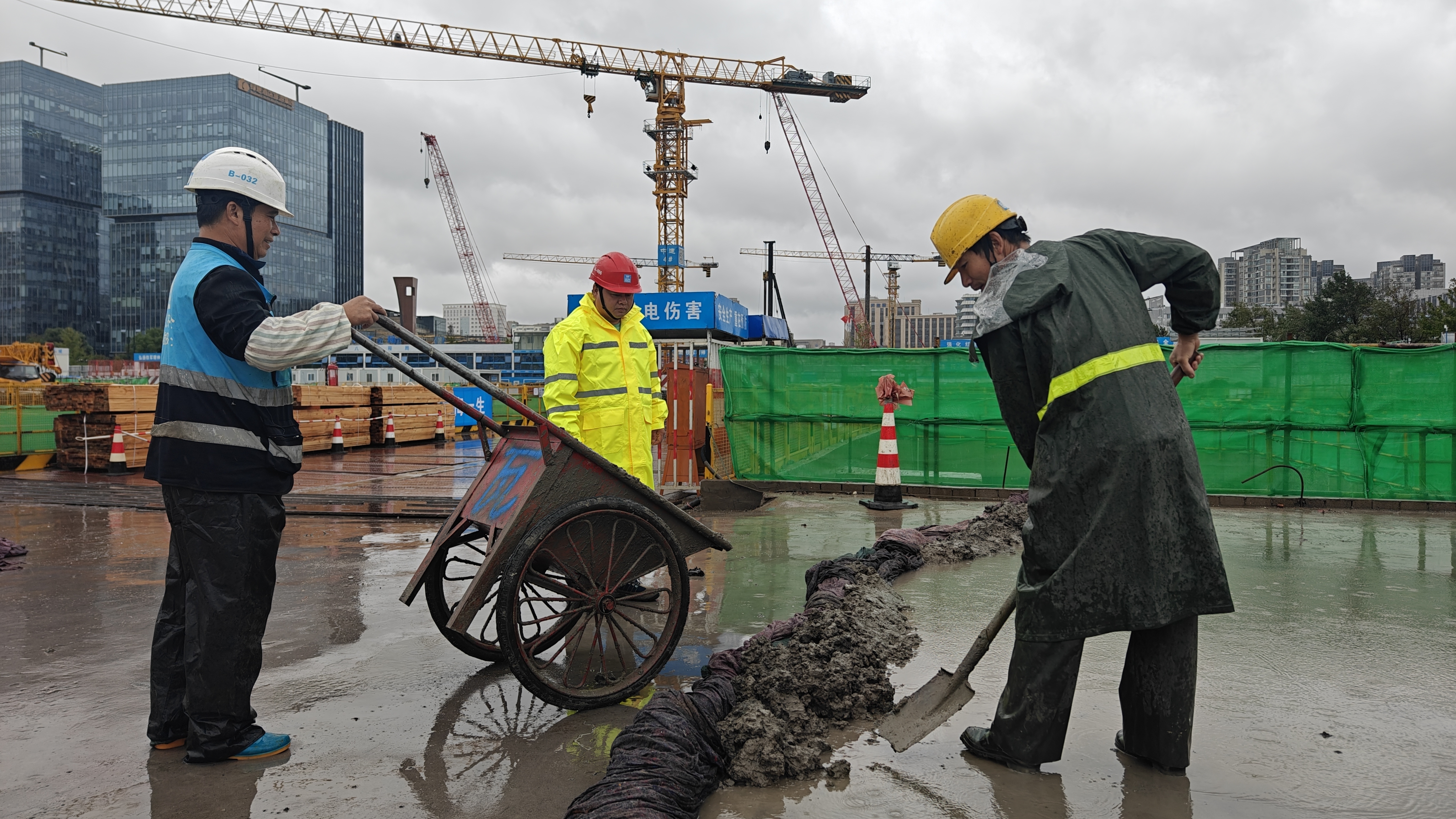 今天一大早,安全部值班人员黄永政,带领施工班组对台风过境暴雨导致基坑积水进行排涝工作,及时排除隐患。“康妮”携来强降雨,中建八局上海公司第二分公司金融城D地块项目快速行动起来。