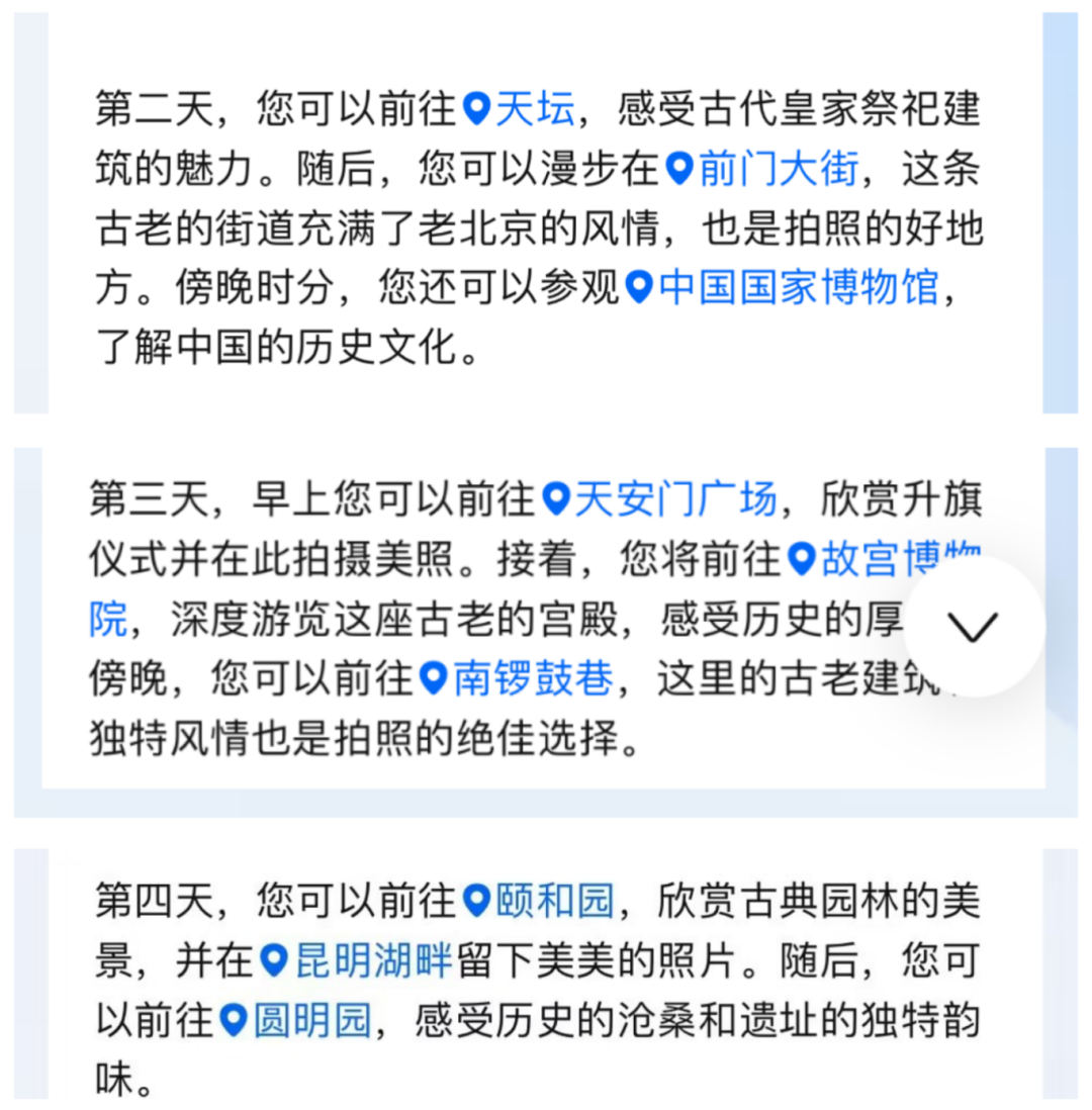 总结一下,用户出行都在纠结“去哪玩”“怎么玩”“怎么玩更划算”的问题,在旅游大模型身上,用户对于携程问道的期望,是能够代替甚至超越传统旅行社的职能,给出一些可用且合理的旅行建议。