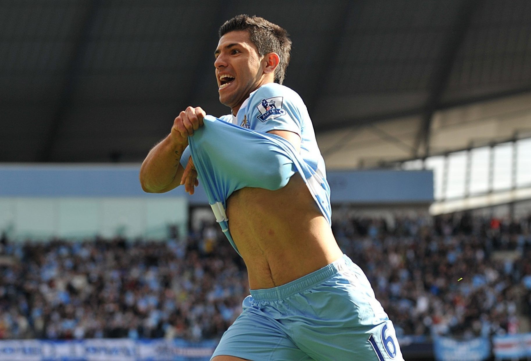 2011-2012赛季,最后一轮,曼城和曼联同分,曼城在末轮意外爆冷以1-2落后于女王公园巡游者,一切看起来都要完了。但这个时候,英雄登场,阿圭罗补时阶段连入两球,在第93分钟20秒时完成绝杀,帮助曼城3-2实现逆转。尽管曼联取胜桑德兰,与曼城同积89分,但曼城凭借净胜球优势力压同城死敌,夺得队史首个英超冠军。
