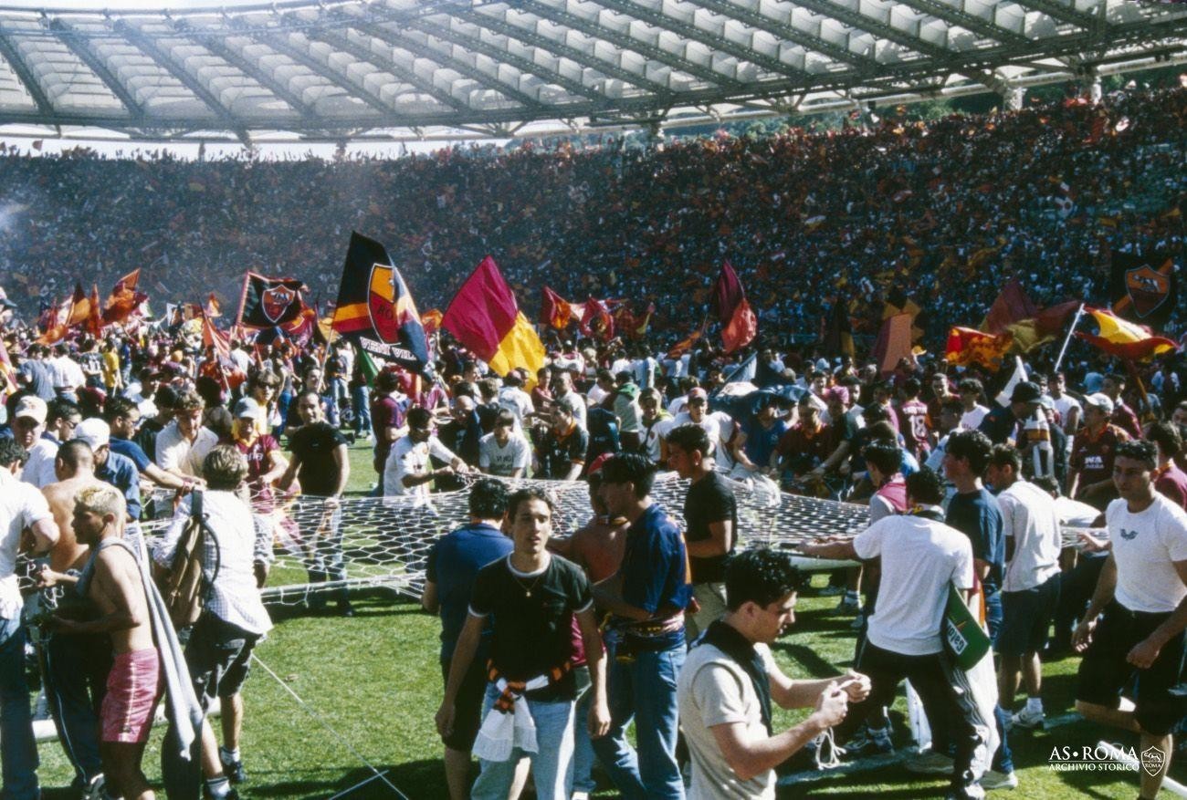而在比赛末段,激动的罗马球迷还未等比赛结束便疯狂地冲入场内,他们扒光了球场里一切能带走的东西,球员的球衣,草皮,球网,鞋钉,泥巴,甚至还企图带走“罗马王子”托蒂的底裤。连见惯了大场面的布冯都感慨,这有些太疯狂了。