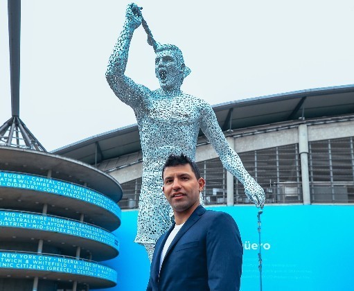 一日蓝月,终生曼城,2022年“9320奇迹”十周年之际,阿奎罗雕像揭幕,这是对他为曼城做出开创性贡献的最高赞美。