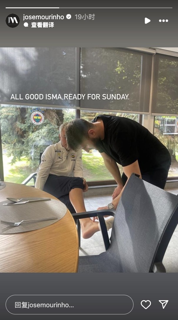 此前,费内巴切主帅穆里尼奥在带队训练时被球员误伤。北京时间11月1日,他在个人社交媒体晒出了自己接受治疗的照片,并表示自己已经为周末的比赛做好了准备。
