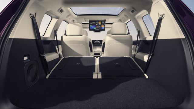 由于用的是后翻式电驱的布局,电机向后延伸,有效增加了第三排的腿部空间,2+2+2的座椅布局载着一家人长途自驾游,老人孩子无论坐在哪个位置,都能给到宽敞舒适的体验。CTC 2.0底盘电池一体化技术实现了全平地板的设计,车身高度不变的情况下,有效增加了纵向空间,哪怕是1米8的大高个,坐进车里也不会出现顶头的尴尬情况。