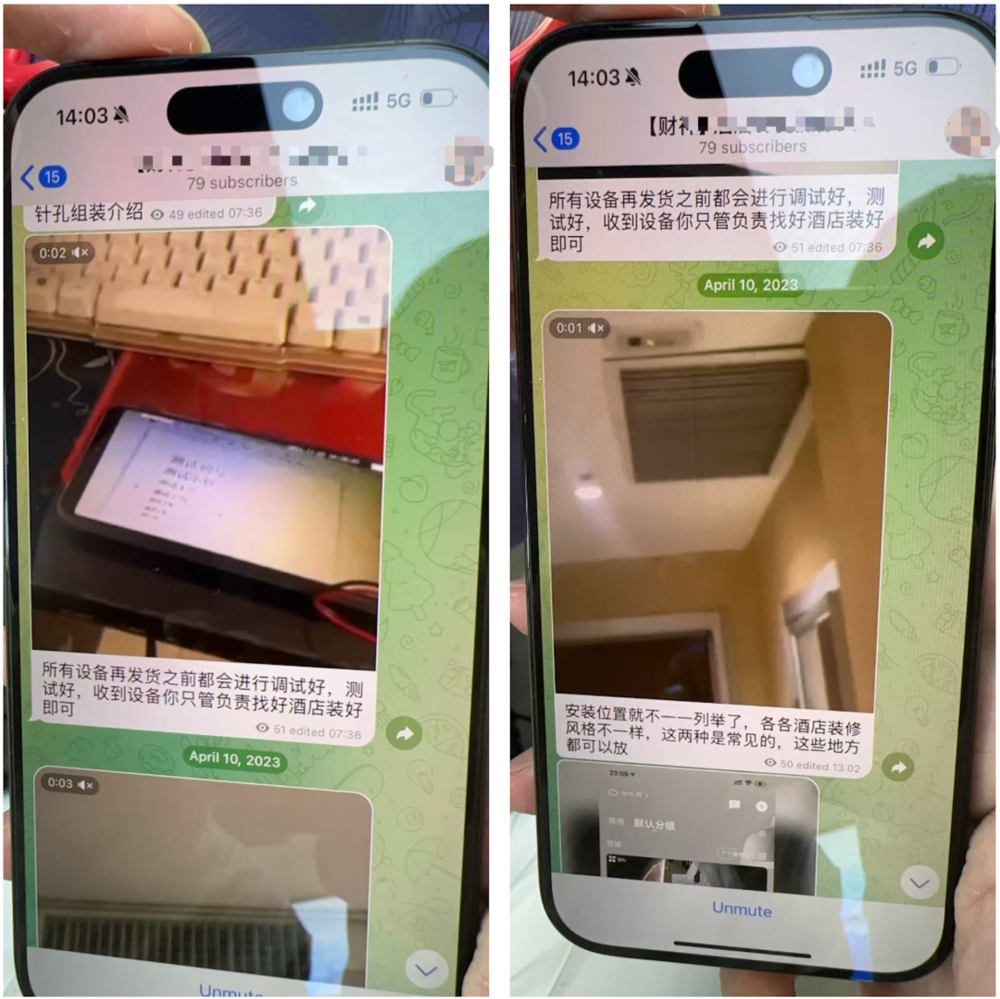 ▲Telegram社群,教用户如何找到酒店中隐藏的摄像头