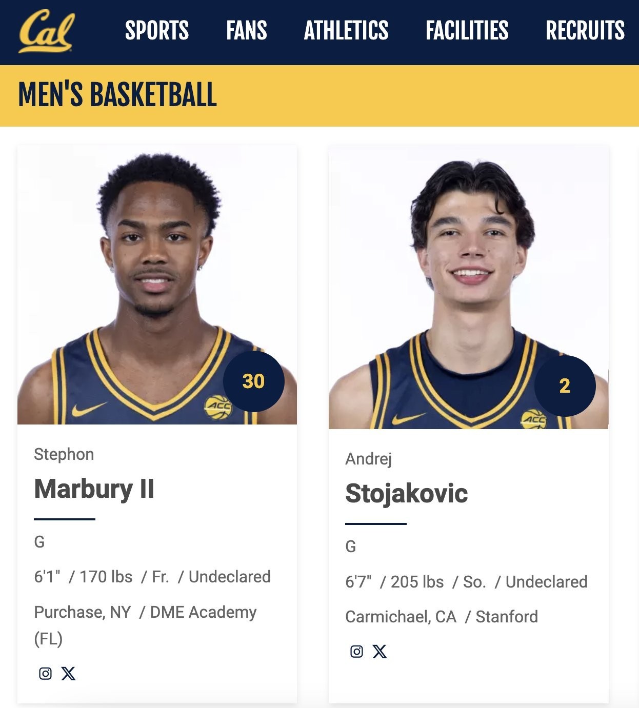 据美媒报道,前NBA球星斯蒂芬-马布里的儿子斯蒂芬-马布里二世和佩贾-斯托贾科维奇的儿子安德烈-斯托贾科维奇目前同效力于加州大学伯克利分校篮球队。