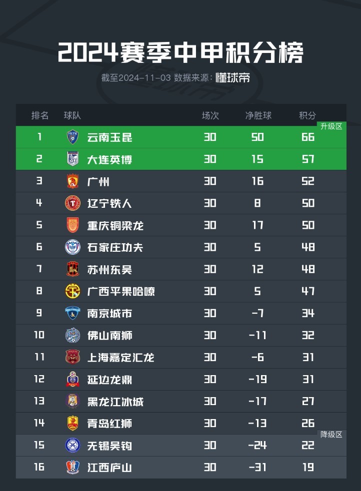 北京时间11月3日下午,2024赛季中甲联赛正式落下帷幕。