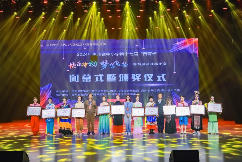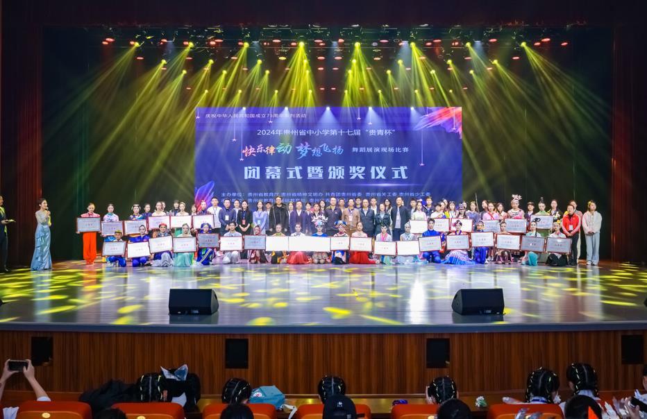 2024年10月31日至11月3日,全省中小学第十七届“贵青杯”——“快乐律动 梦想飞扬”校园舞蹈展演活动在贵州大学溪山剧场精彩落幕。此项活动历时半年,经过层层选拔,来自全省81所中小学、特殊教育学校、中职校的1796名师生汇聚林城贵阳,用充满青春气息的校园“炫舞”,展示全省各地中小学落实“双减”政策、开展课后服务和社团活动的美育成果,呈现新时代青少年鸿鹄之志和新征程上奋力逐梦的精神风貌。