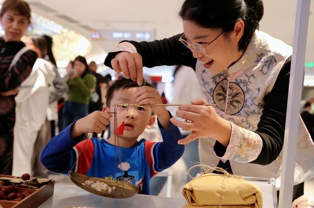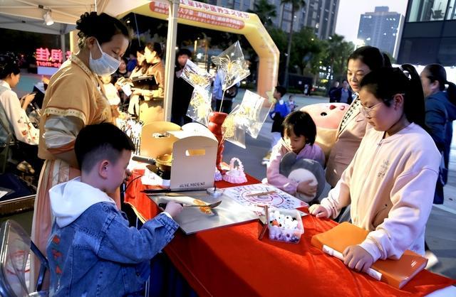 肚脐通五脏六腑,联络全身脉络,在肚脐上进行隔物灸,有助激发经络之气,调和气血,疏通经络。在灸疗体验专区,古法脐灸、古法铺灸等传统中医的非遗项目吸引了不少人的注意。在非遗文化专区,漆画、糖画等非遗文化项目,也让不少家长和孩子纷纷驻足。古老中医和传统文化的交融,在夜市中大放异彩。