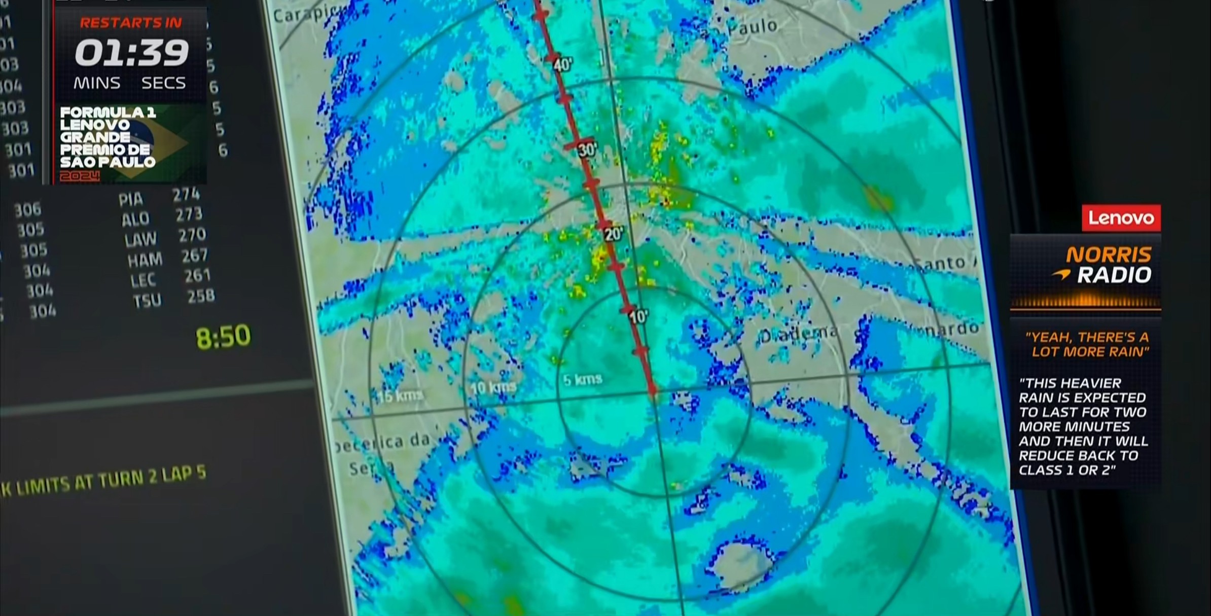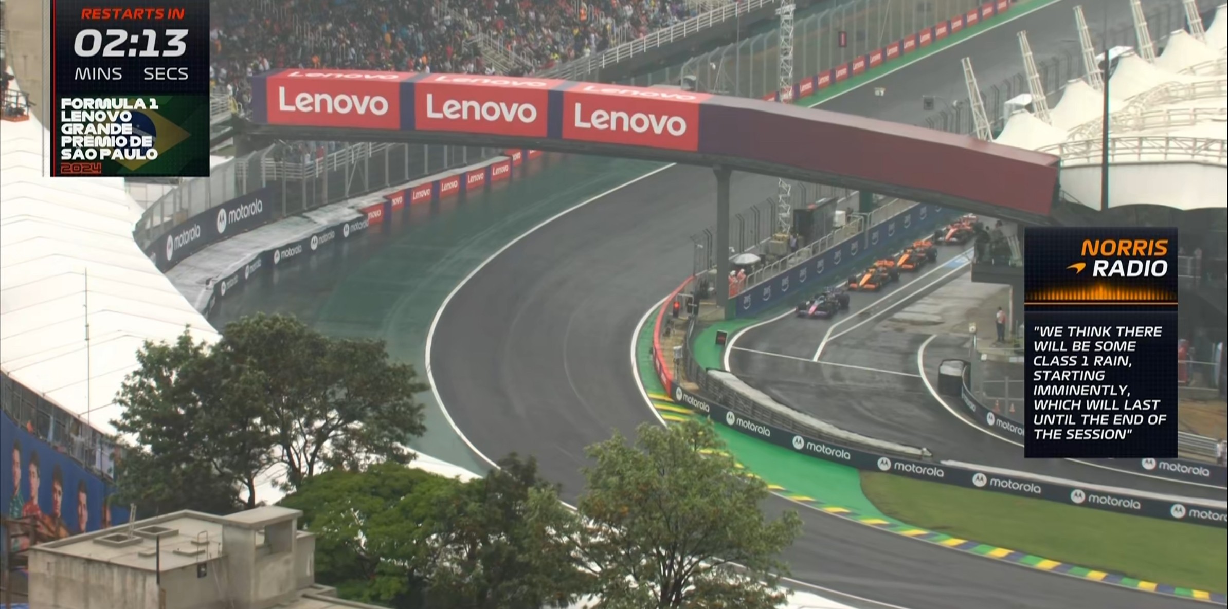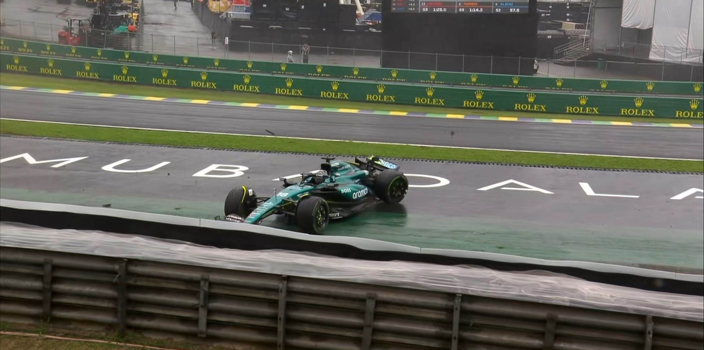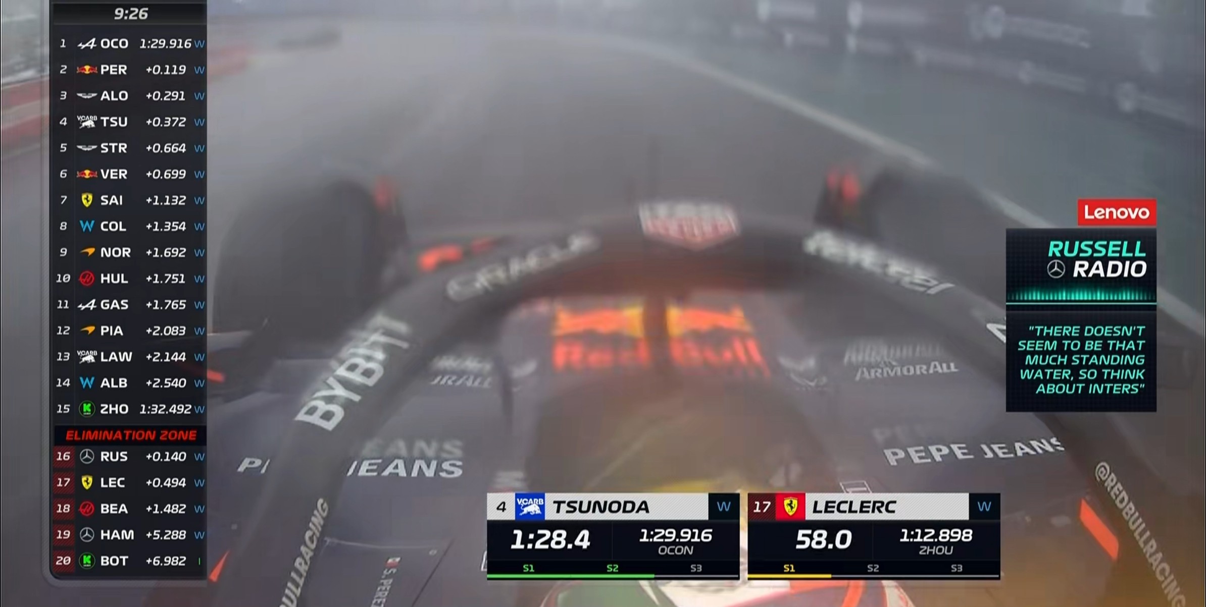 现场的能见度非常糟糕,诺里斯的首个飞驰圈成绩比干地要慢20秒左右!
