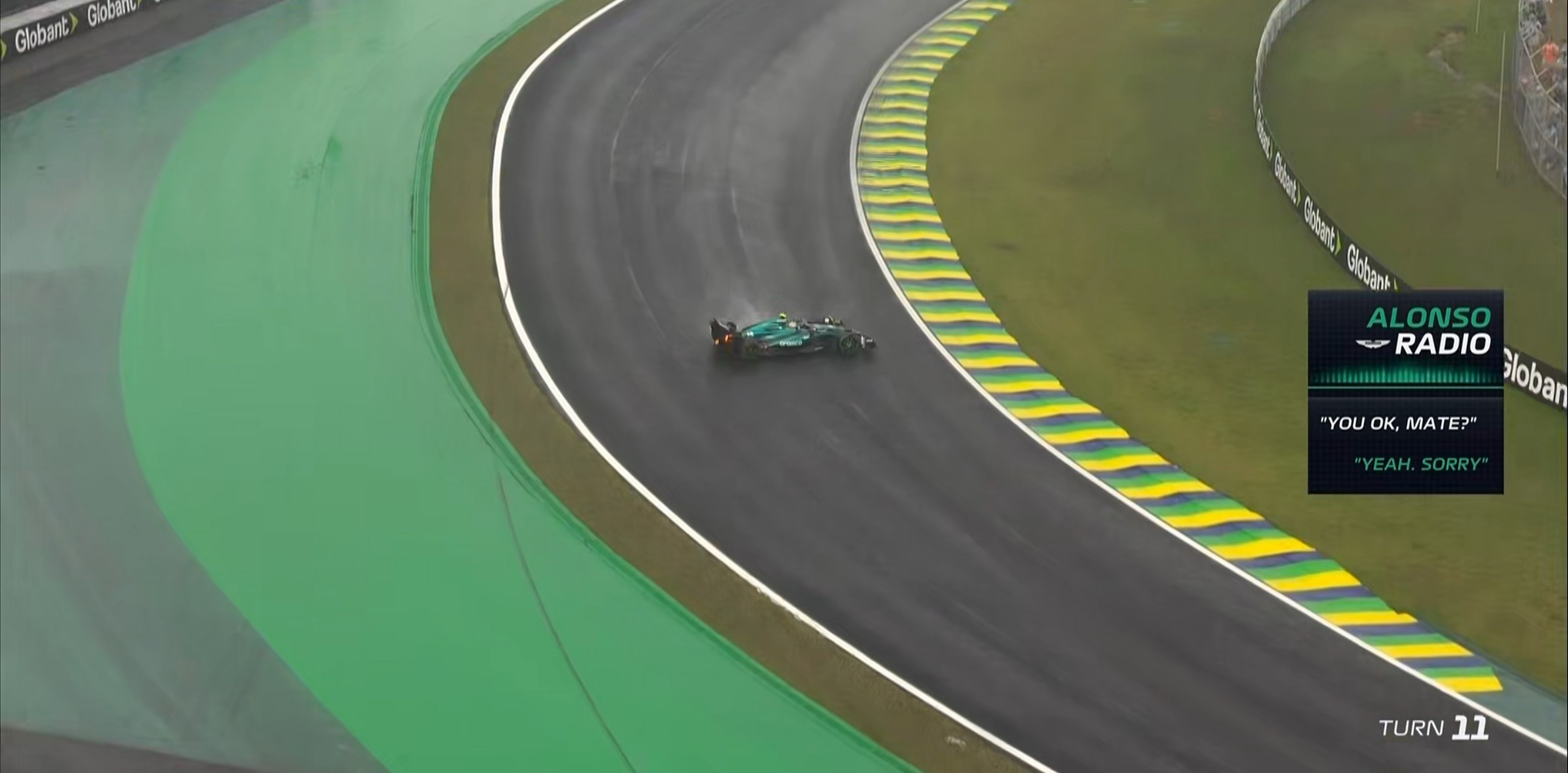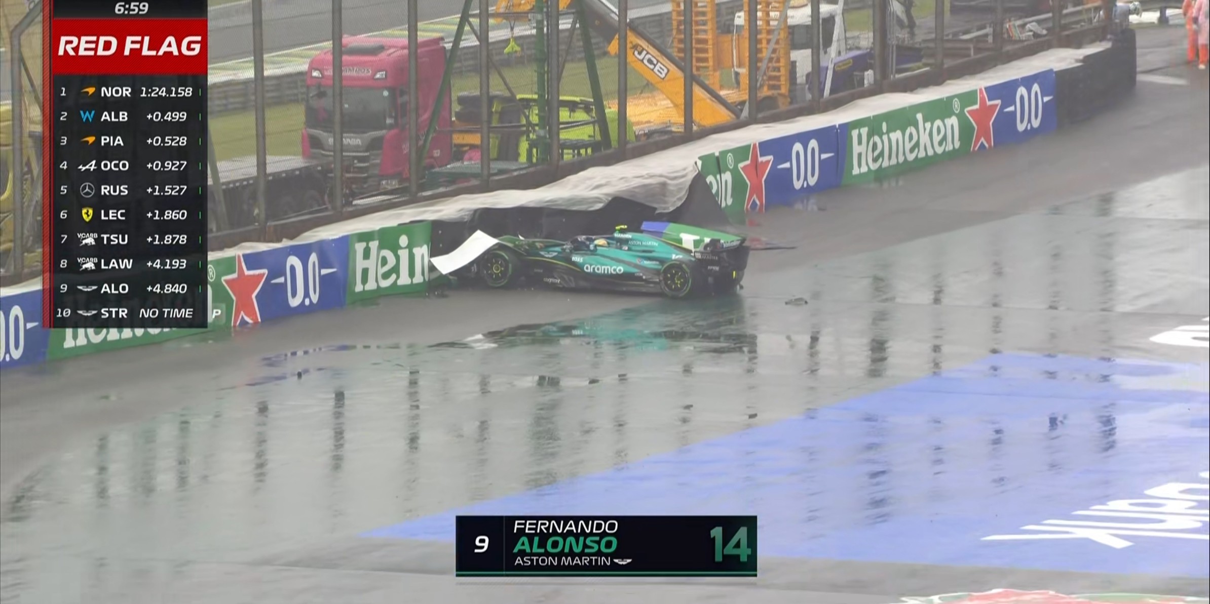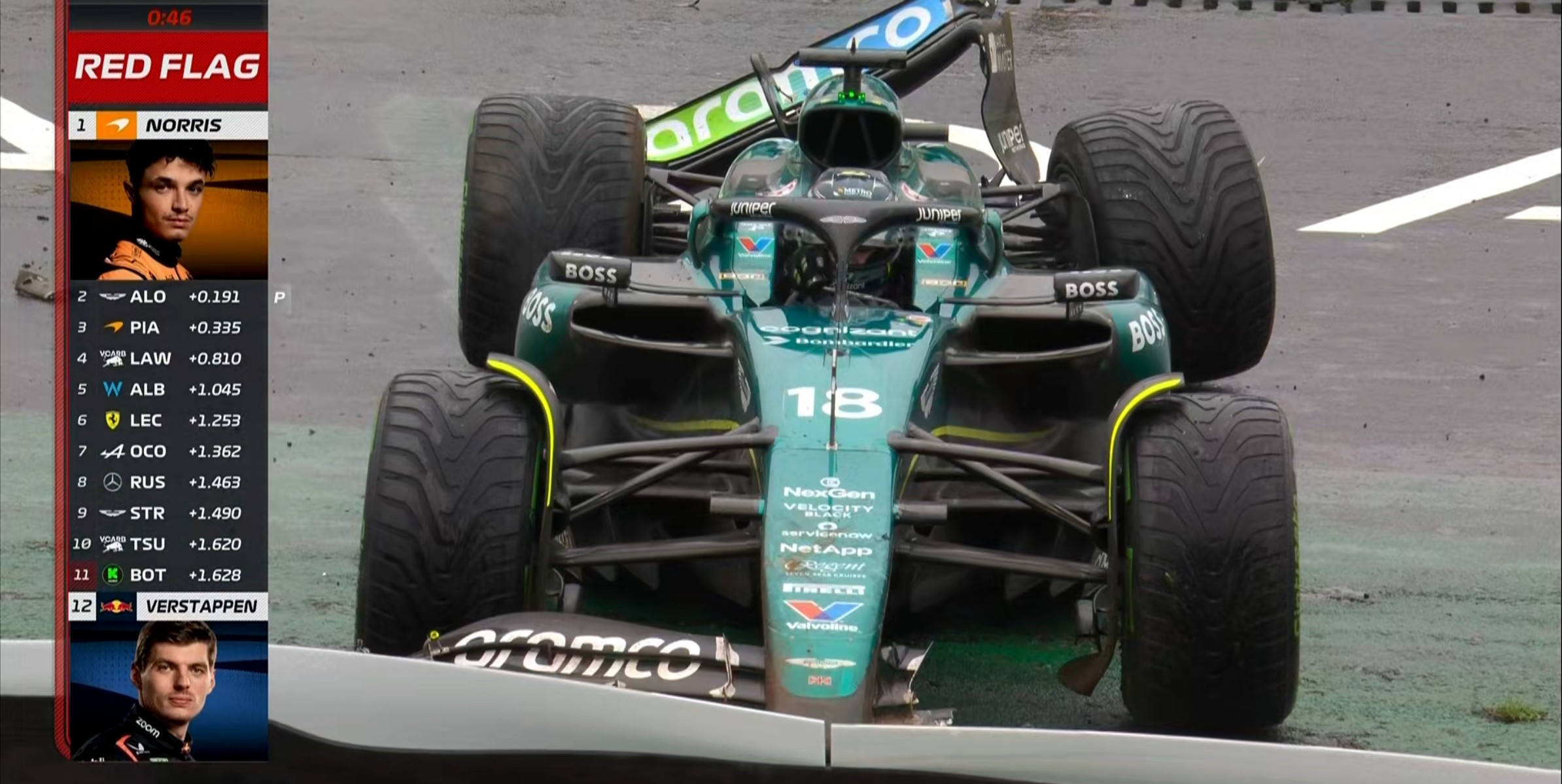 红旗×4!阿隆索在11号弯spin上墙,Q3暂停!