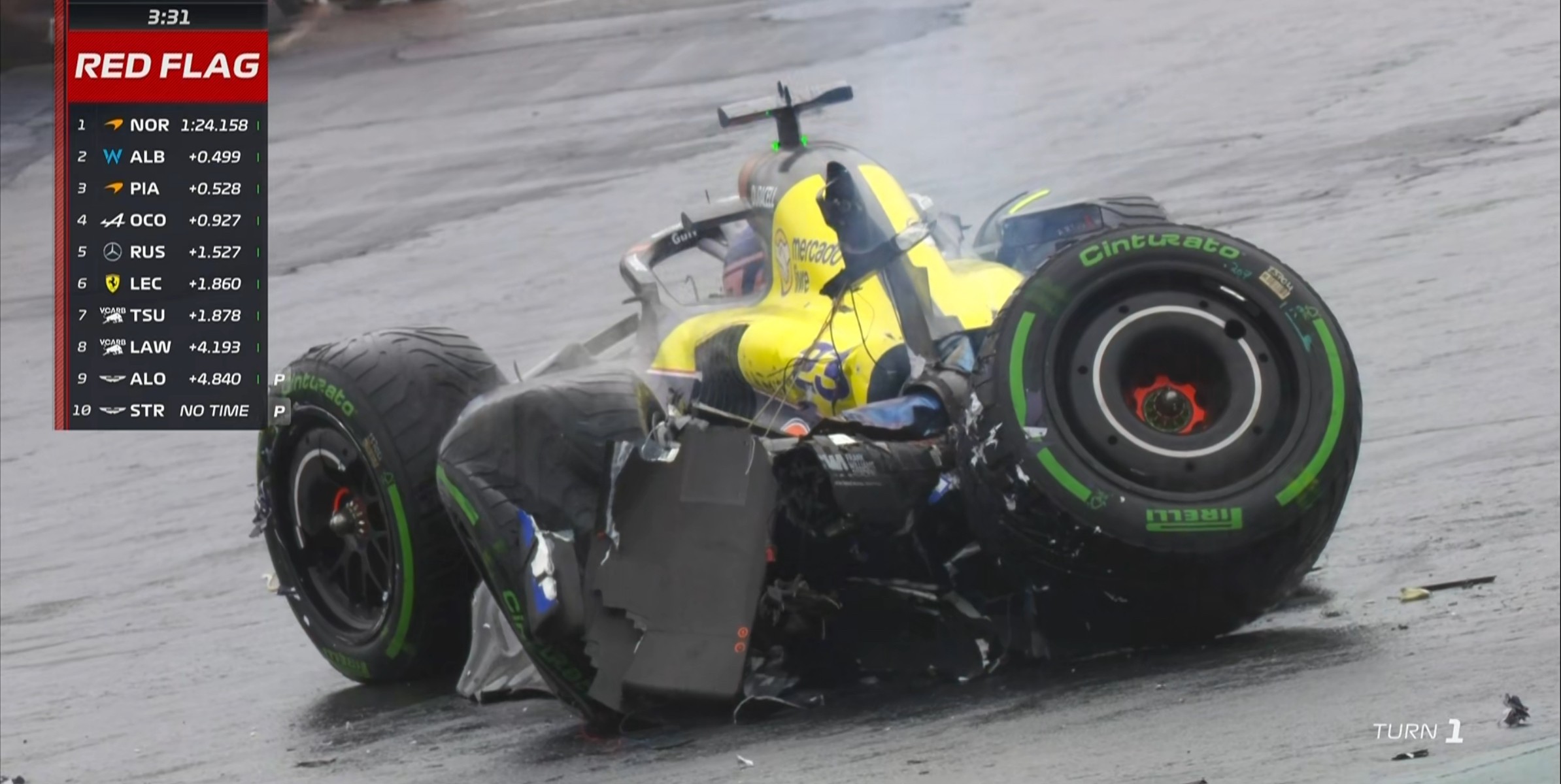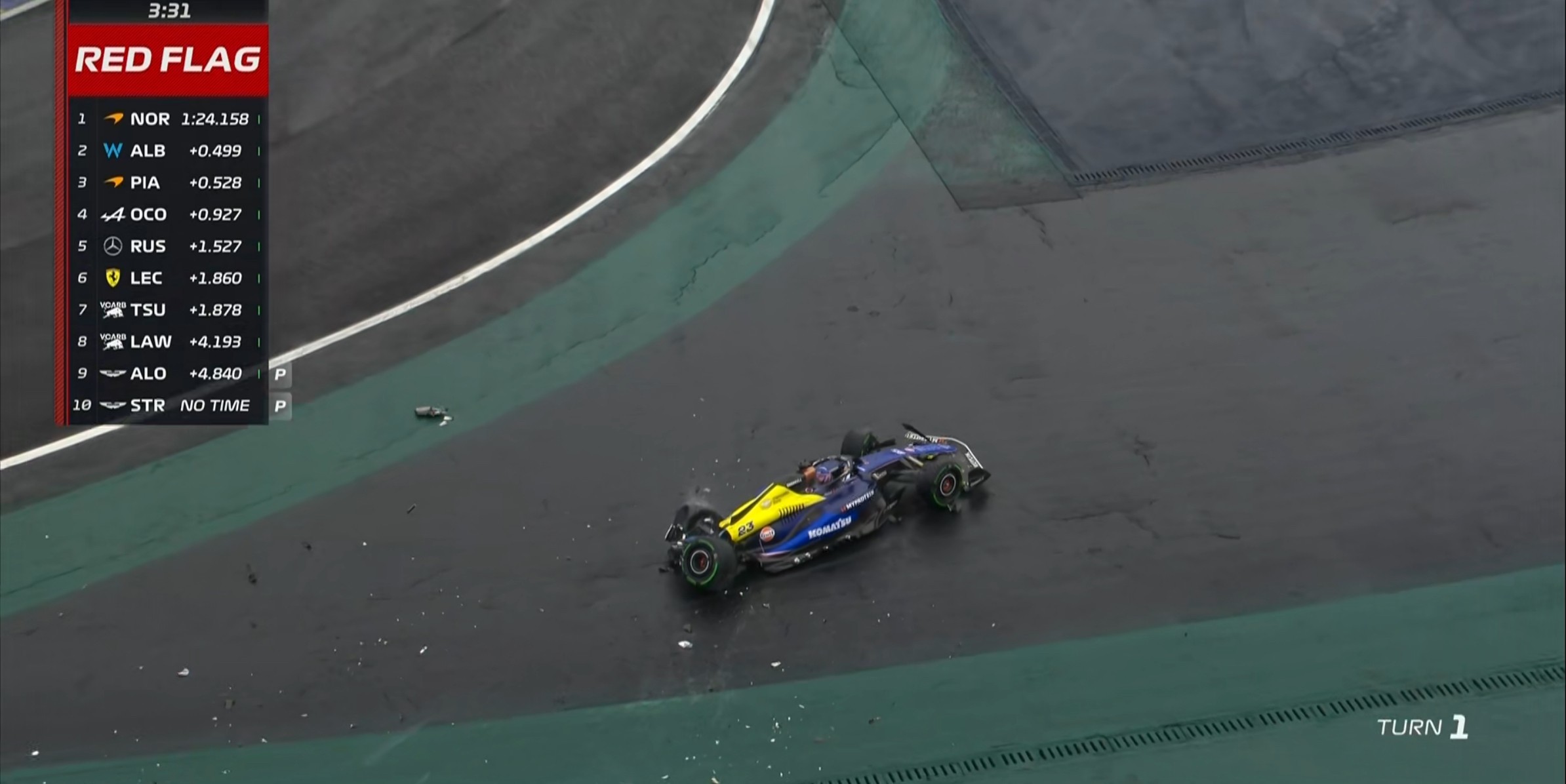 红旗×5!阿尔本在1号弯spin上墙,Q3再次暂停!