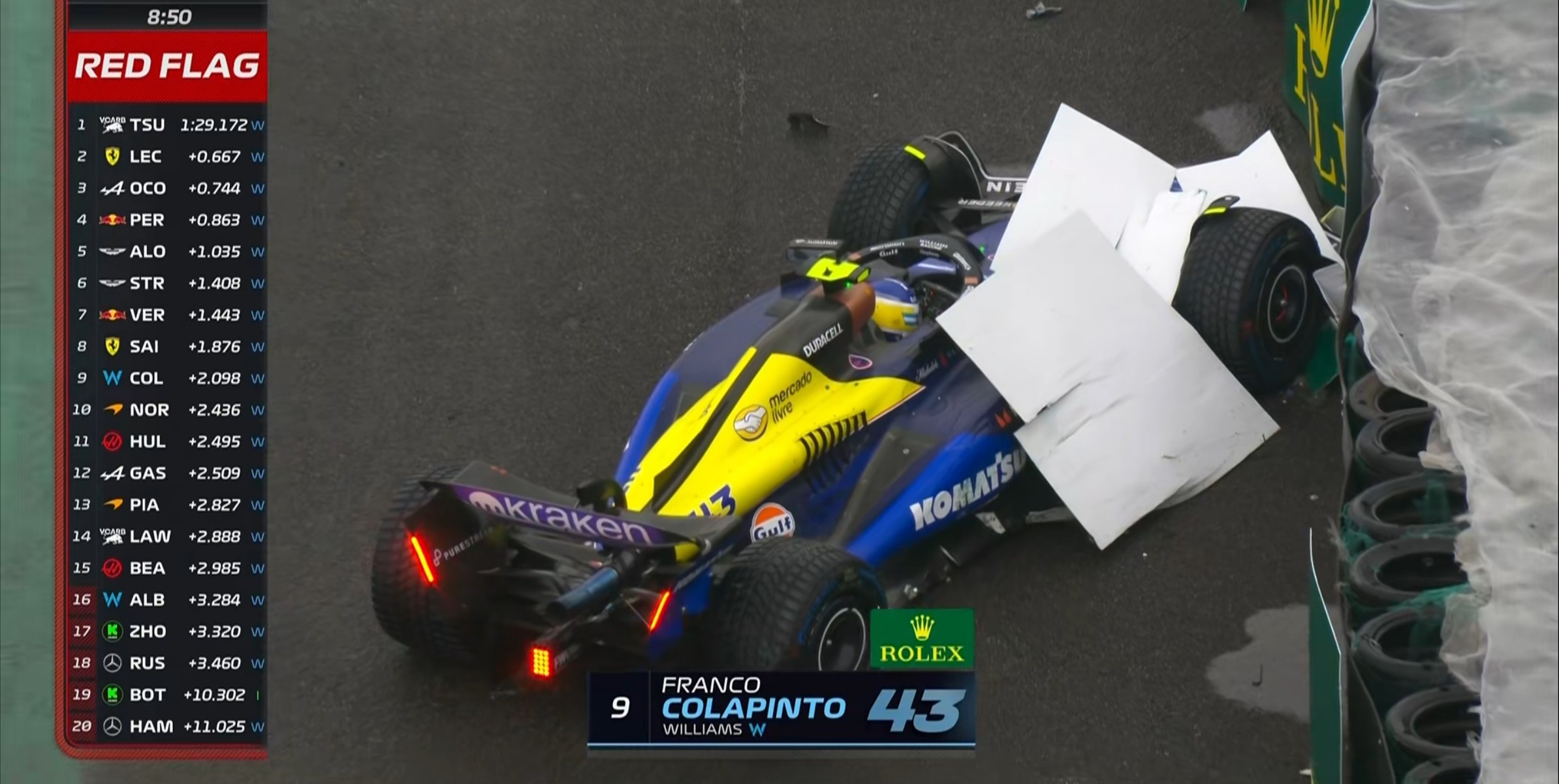 红旗!科拉平托在3号弯spin上墙,Q1暂停!