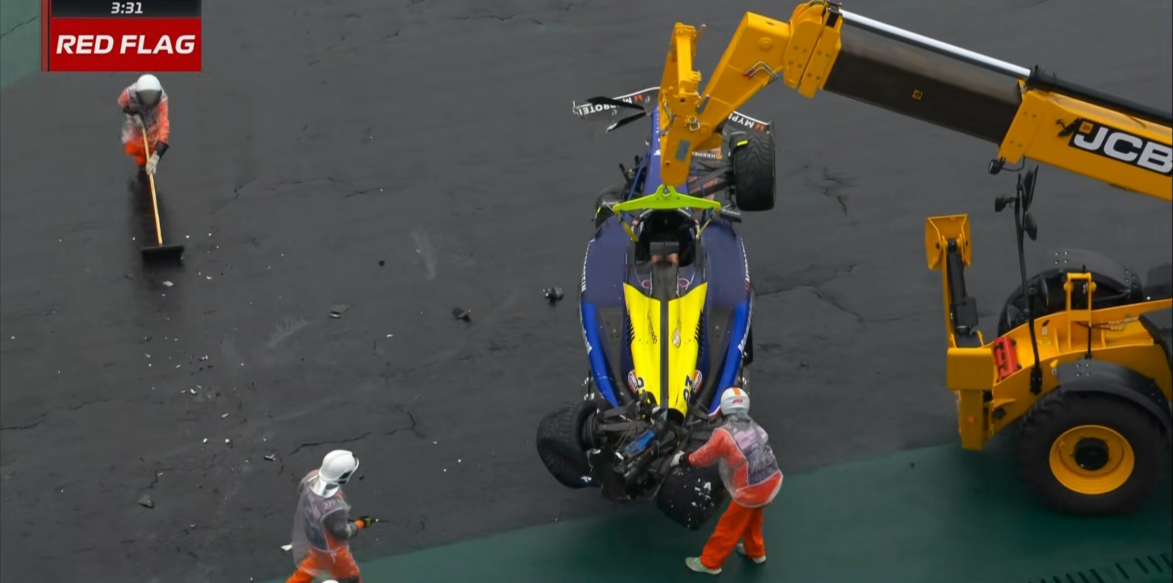 可以看到赛车的受损程度非常严重,阿尔本有可能会错过后面的正赛!