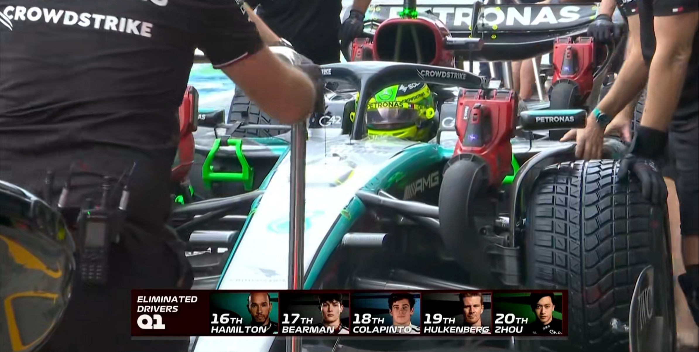 Q1被淘汰车手:汉密尔顿、贝尔曼、科拉平托、霍肯博格、周冠宇
