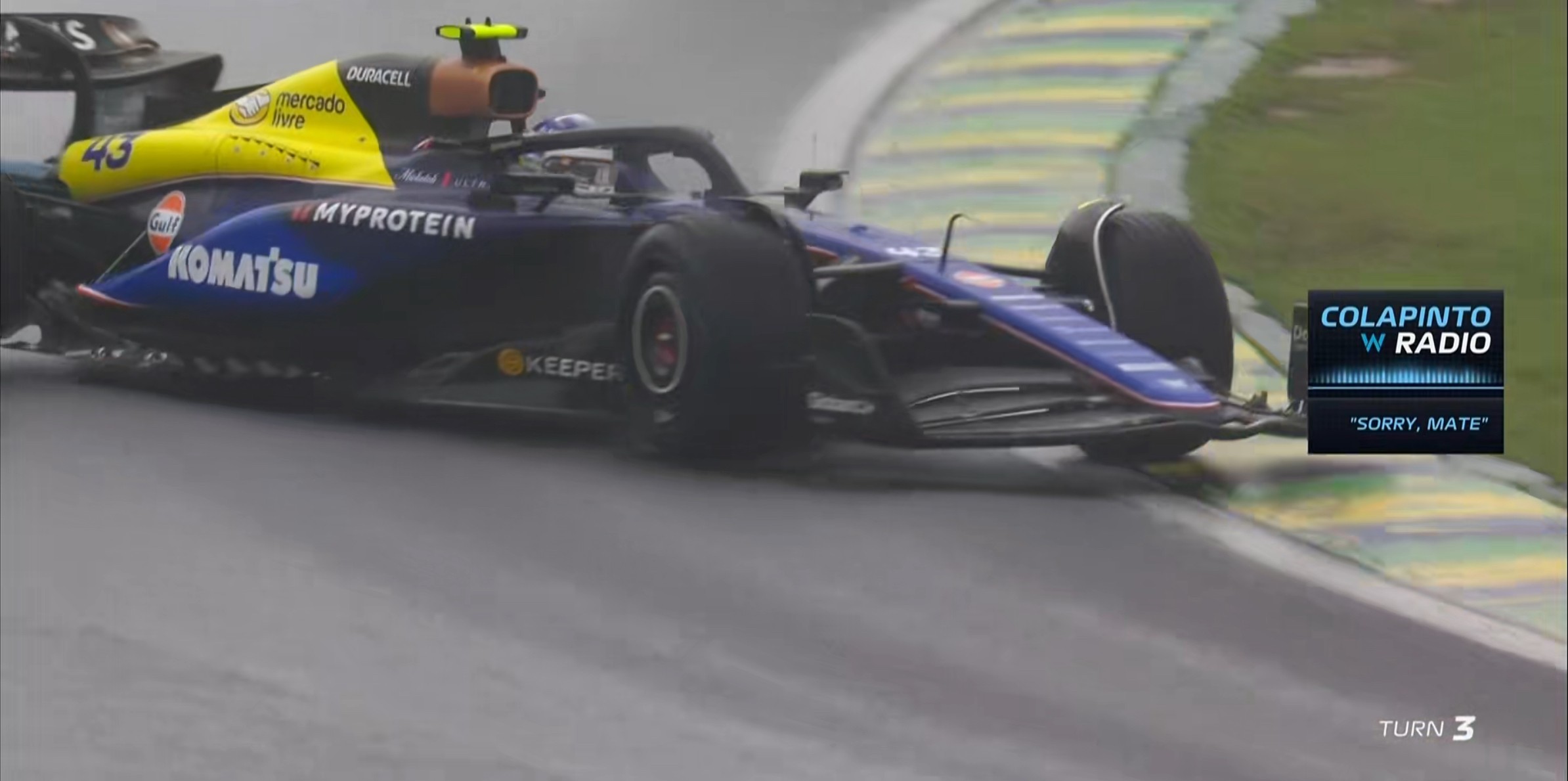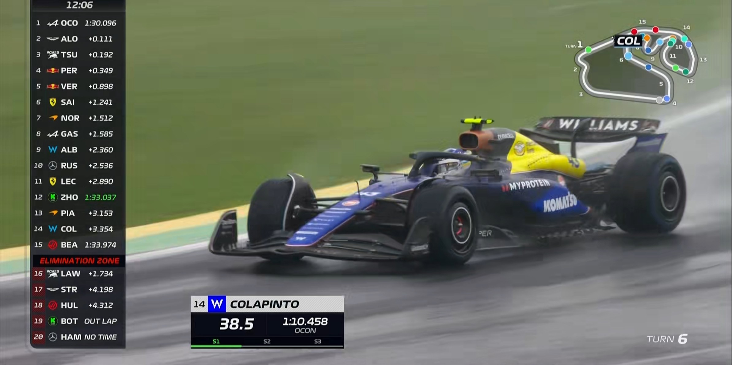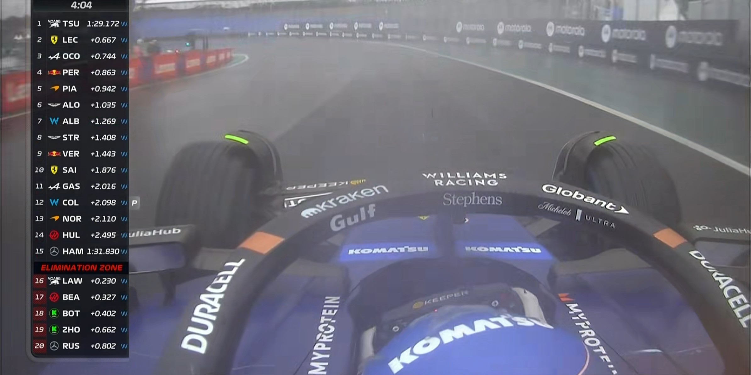 这也是科拉平托F1生涯第一次在雨中跑排位赛,算是“交学费”积累经验了!