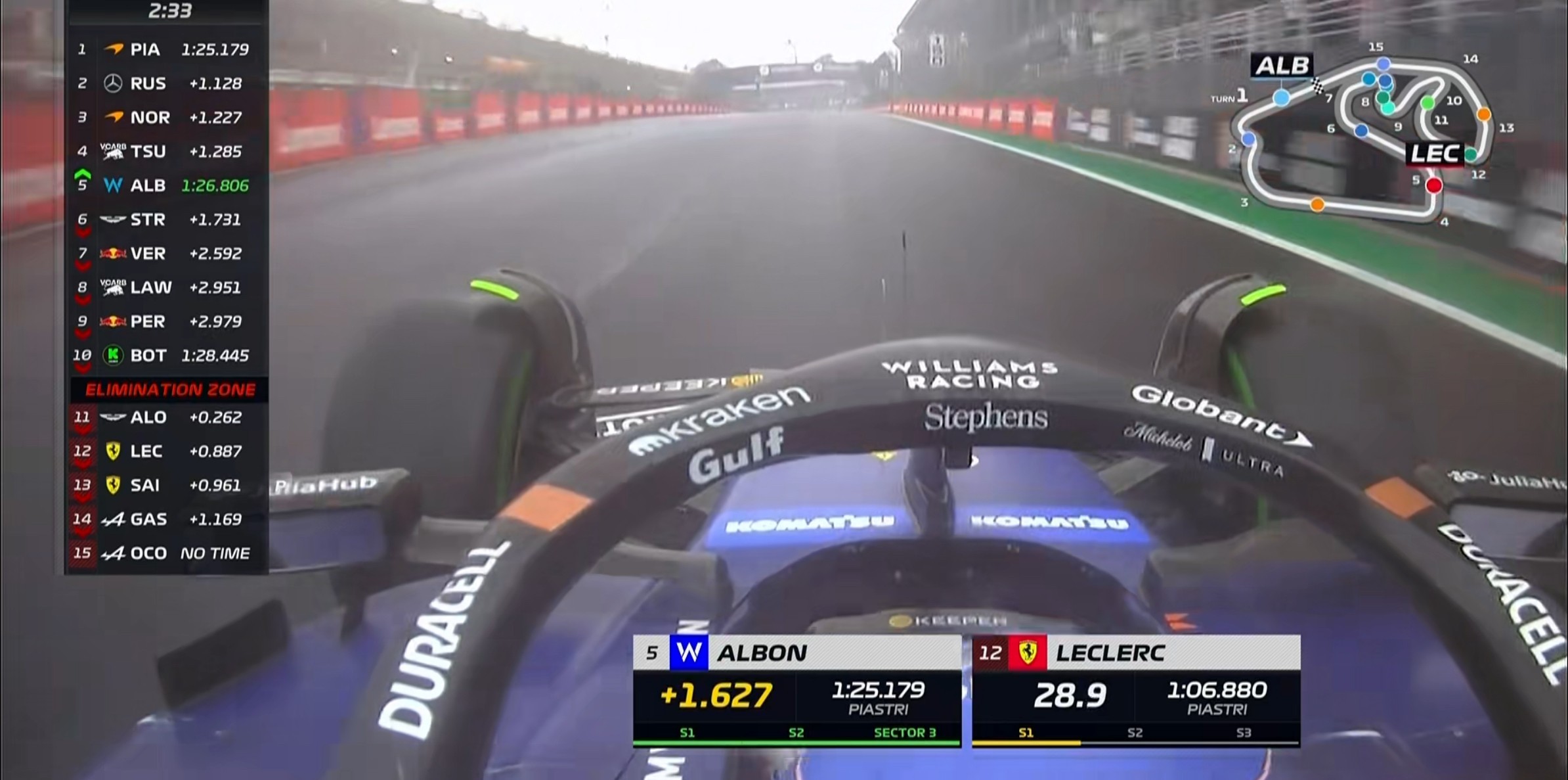 赛道的状况在不断演进,皮亚斯特里短暂登顶后,阿尔本、诺里斯先后刷新最快圈!