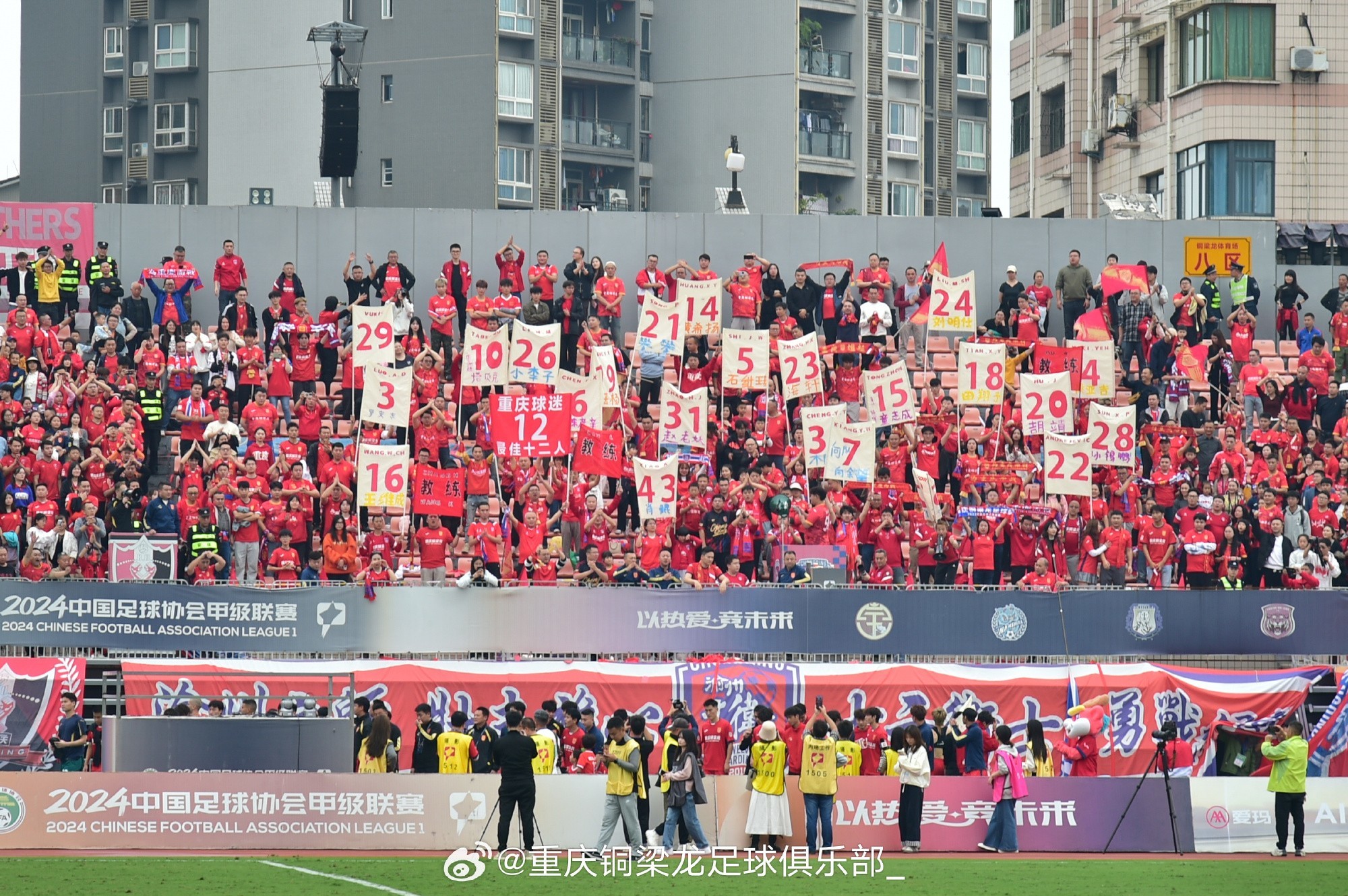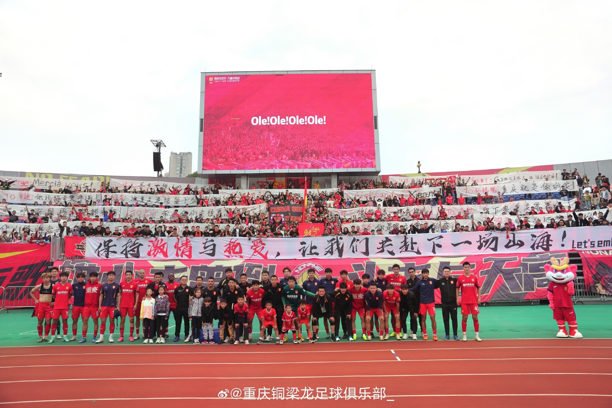 11月3日,中甲联赛落下帷幕,重庆铜梁龙队错失了冲超资格,赛后,官方发布动态,向球迷们致谢。