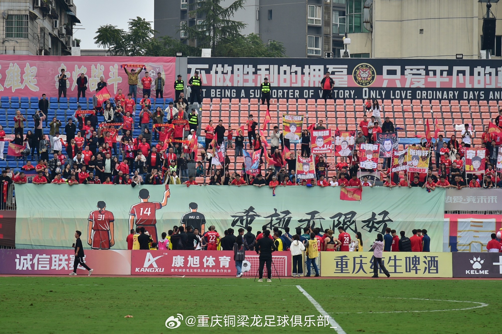 感谢一个赛季所有铜梁龙球迷的支持与鼓励,我们收藏好今日这份感动,将这些或美好或难忘或苦涩或艰辛或高亢或低沉或昂扬或响亮的记忆好好留存,在未来路上某一天打开,成为握紧拳头,咬紧牙关,拼尽全力的源动力!