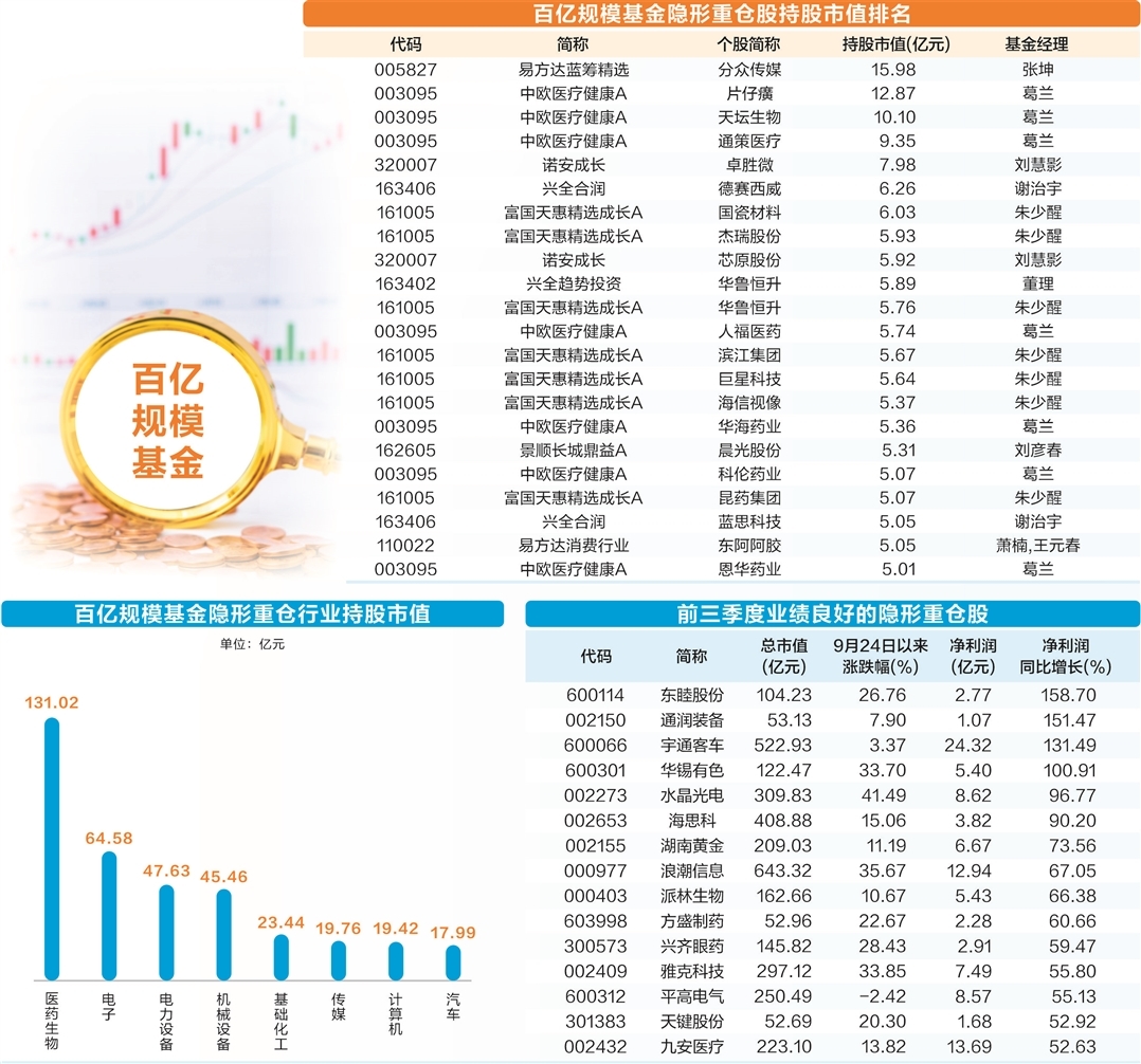 随着公募基金和上市公司三季报披露收官,百亿规模公募基金的“隐形持仓”也相继浮出水面。