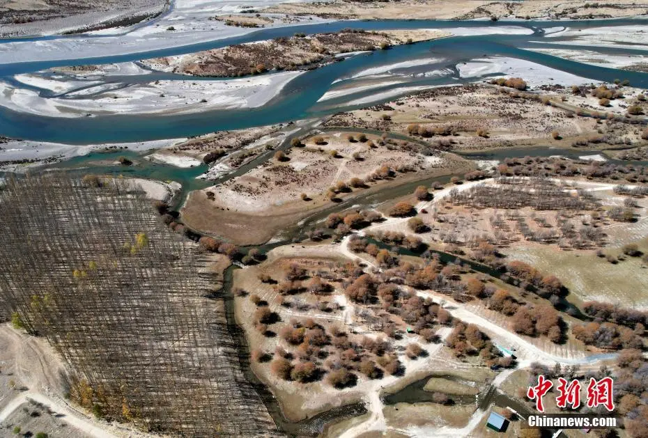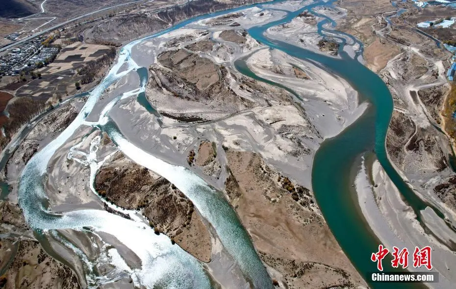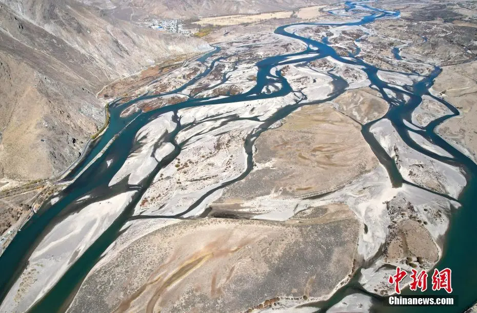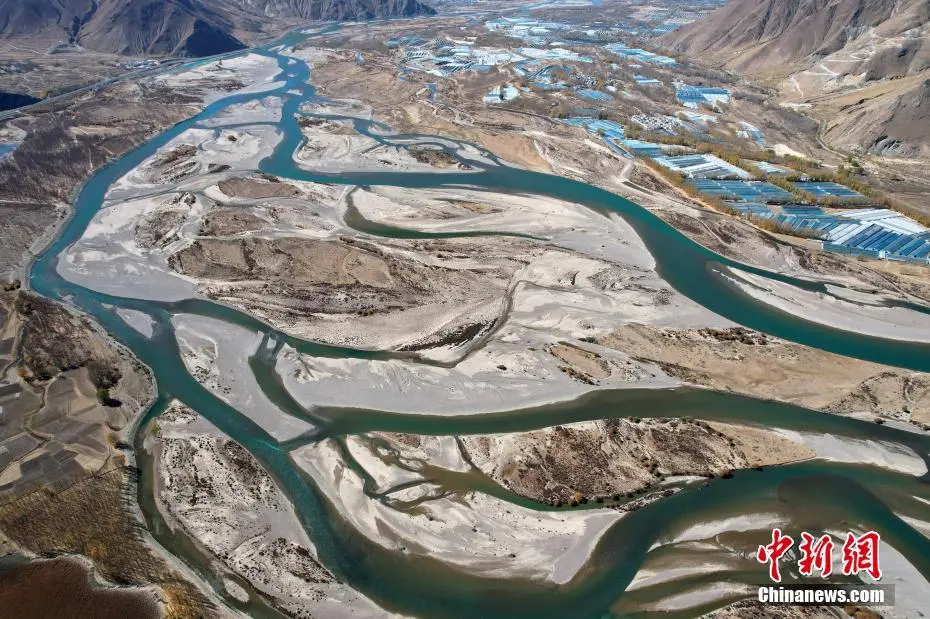 拉萨河藏语称为“吉曲”,意为“幸福河”,是雅鲁藏布江的主要支流。深秋时节,拉萨河水系犹如发辫,十分壮美。图为11月3日拉萨河辫状水系。(无人机照片)中新社记者 李林 摄