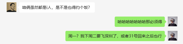 但是着实是两个i人,在互联网上聊得风生水起, 线下却一直没有见过面,然后又是几次大的出差,时间总是卡不上,这事,一拖就拖到了现在。