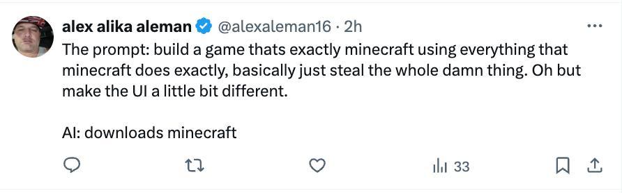 很多试玩的人也有同感:「告诉 AI:参考《我的世界》做一个游戏,把 UI 改改就行。」