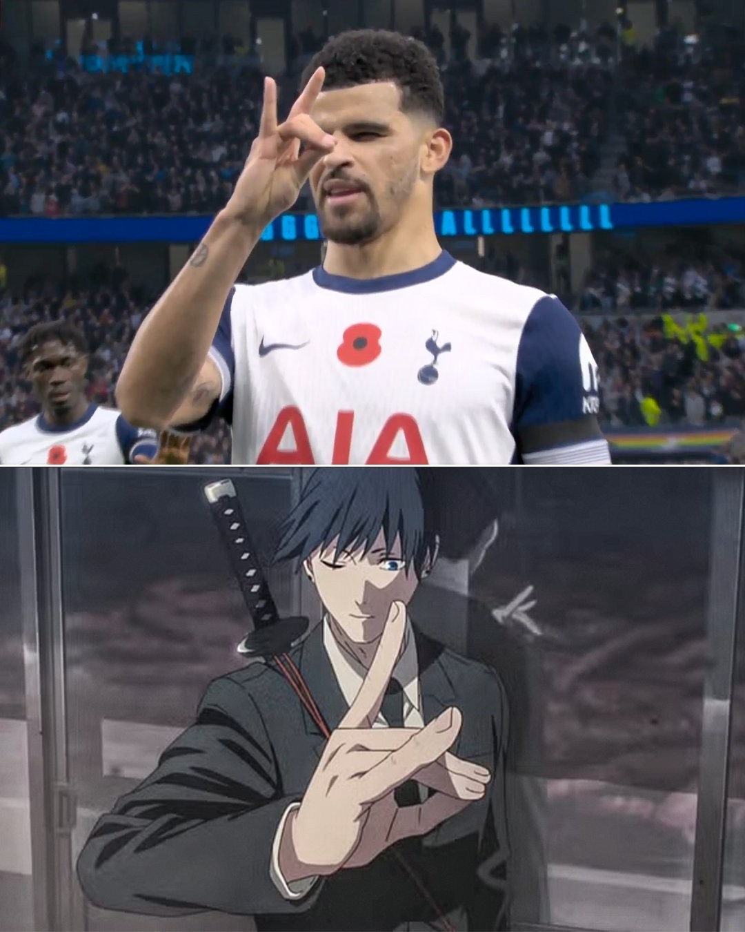 英超第10轮的一场较量中,托特纳姆热刺4-1逆转阿斯顿维拉。热刺前锋索兰克在本场比赛独中两元率队逆转。而他也再一次使用了独特的“日漫风”动作来庆祝进球。本次他致敬的是热门动漫《电锯人》的角色早川秋。