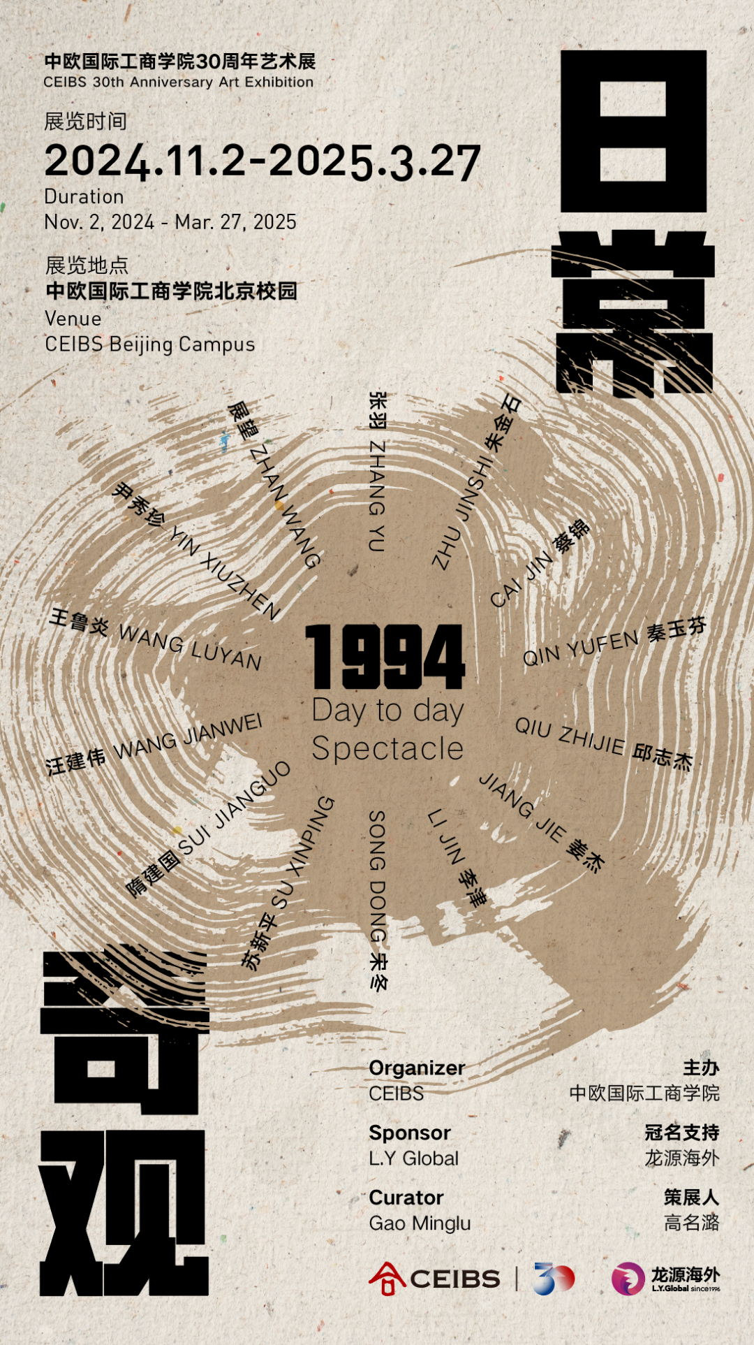 2024年11月2日,“1994:日常·奇观” 展览在中欧国际工商学院北京校区开幕。本次展览由当代艺术理论家、批评家高名潞策展,由中欧国际工商学院主办,龙源海外冠名支持。