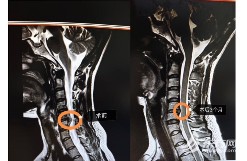 东方网通讯员生星11月5日报道:“你看这里,对比三个月之前的片子,压迫神经的脱垂髓核彻底消失。胶原酶已经把它完全溶解了,效果跟开刀一样。”