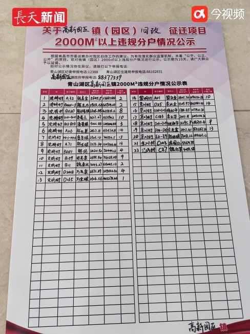 在青山湖区高新技术产业园管委会,一张园区旧改征迁项目2000㎡以上违规分户情况公示,印证了魏秋根的说法,该公示上共有22户涉及违规分户。