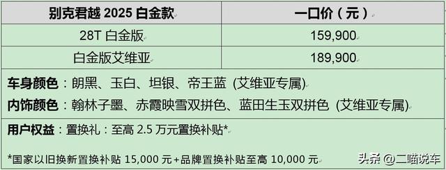 2024年10月30日 今天,上汽通用汽车别克品牌宣布,新豪华智享座驾——别克君越2025白金款正式上市,推出28T白金版和白金版艾维亚两款车型,限时一口价15.99万元起,给用户一步到位的越级品质选择。