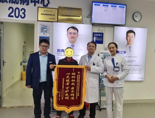 为了表达对郴州爱尔眼科医院的深深感激,张奶奶特别定制了一面锦旗,上书“眼科权威 医术精湛,心灵使者 守护使者”。这不仅是对刘医生医术的认可,更是对医院全体医护人员的感谢。