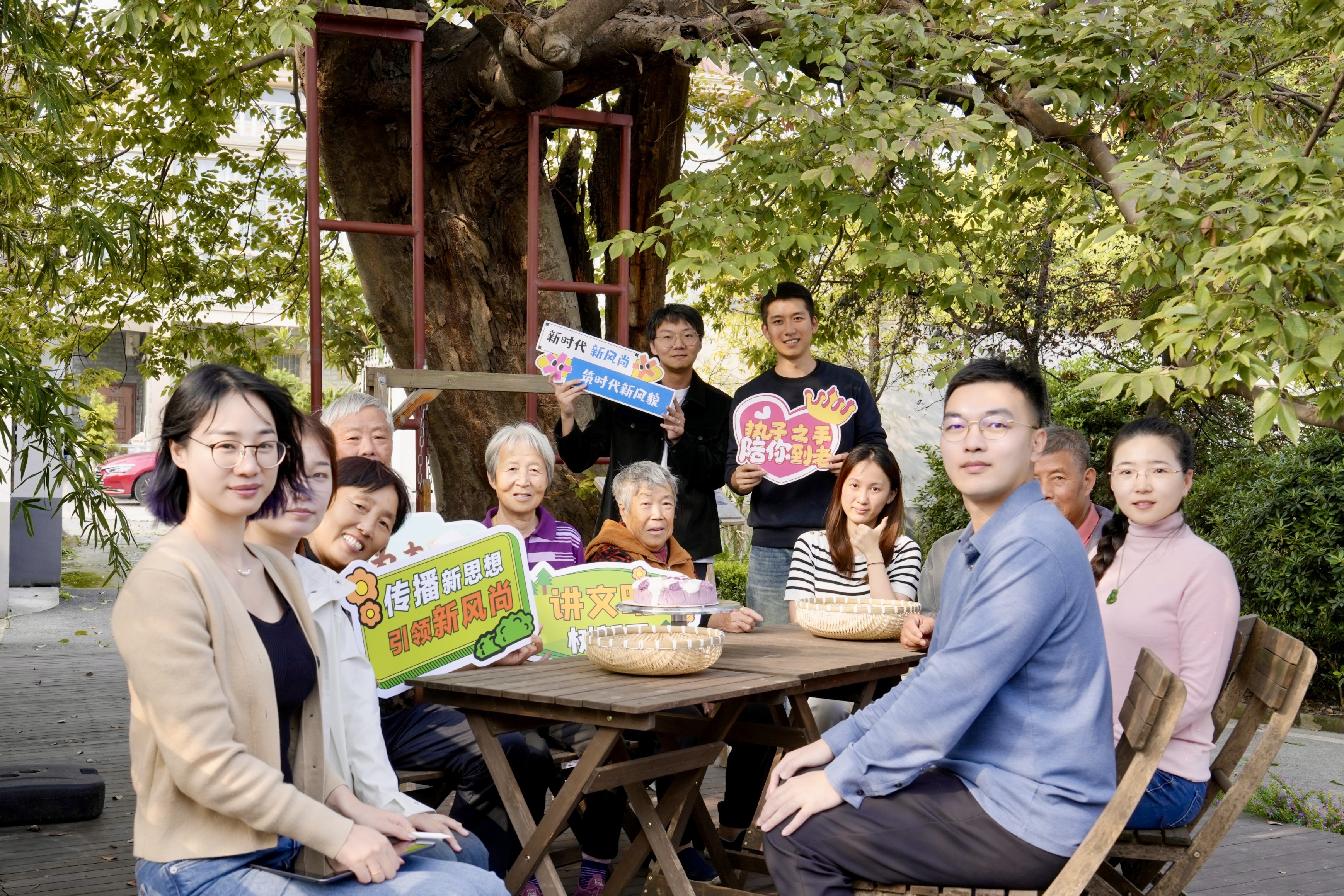 “小妹妹带吾尼吃时鲜货了。”服务站门口的百年老榆树下,邻里乡亲搬来长凳方桌,添置上碗筷餐具,土灶芋艿和芋泥蛋糕也已经上桌。大家一边分享美食、一边拉起家常。