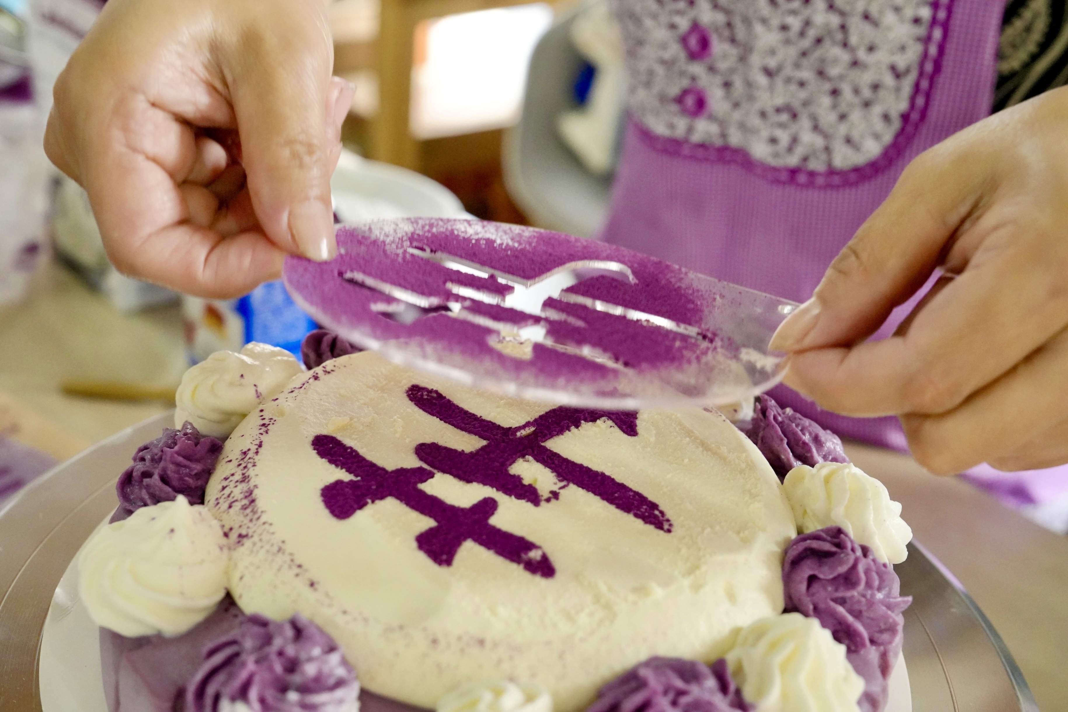 把蒸熟芋头和紫薯切成块,加入淡奶油搅打,就变成了细腻丝滑、散发着迷人香气的芋泥。在模具中铺上一层油纸,加入巴斯克芝士,铺上一层厚厚的芋泥,送入烤箱。“叮” 的一声响起,融合传统食材和新鲜创意的芋泥巴斯克芝士蛋糕大功告成。