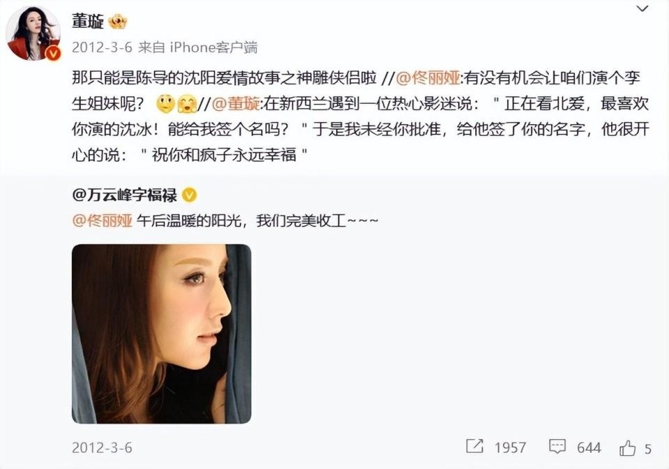 据悉,董璇佟丽娅多次被热议长相相似,她俩也多次晒合照,互称对方是“姐”和“妹”,感情十分要好。