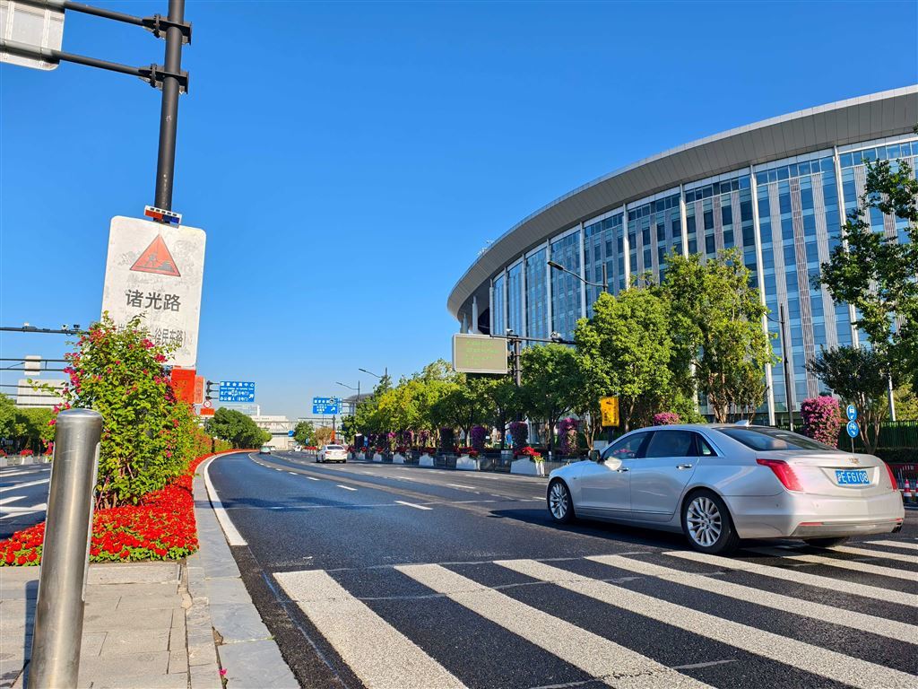 在“四叶草”周边道路上,43块高可见度的电子交通诱导屏有序分布着,实时更新周边的道路拥堵情况。今年,青浦警方对国家会展中心周边的电子交通诱导屏功能再升级再优化,不仅会显示周边停车场信息,同时也会实时提示周边管控措施,方便驾驶员选择最优路线通行。