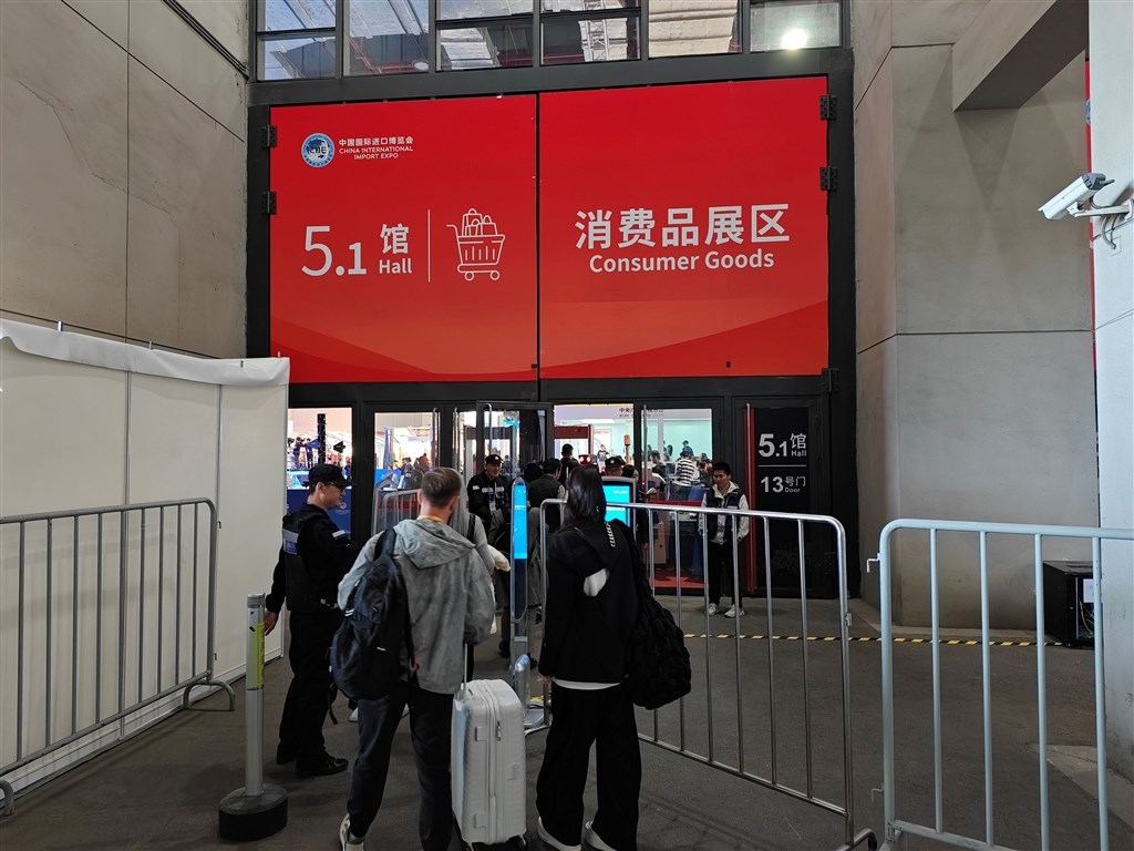 青浦公安分局第七届进博会安保第一责任区执行负责人韩珂介绍,今年为了进一步均衡各出入口客流,在5.1号馆入口处增设了一个安检通道,便捷参展观众进馆安检,缩短进馆行进时间,提升展区效能。截止上午11时,西厅0米层共安检约1.5万人次。