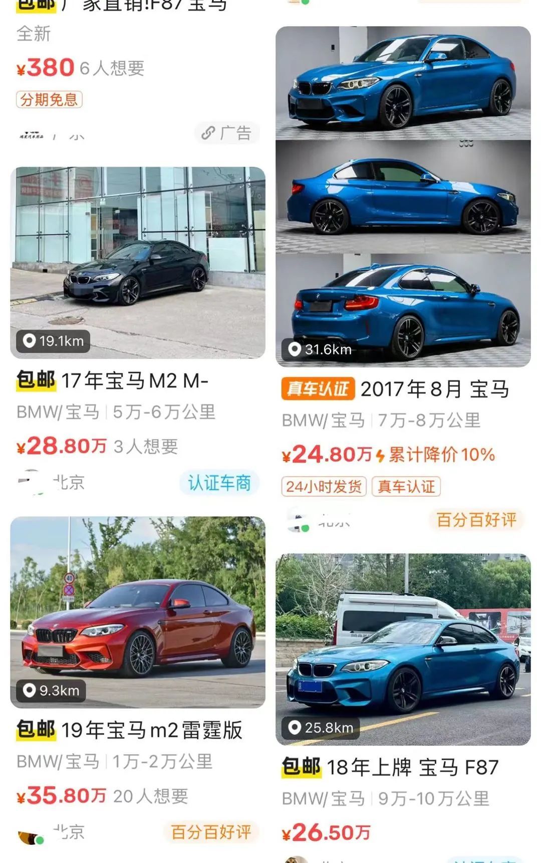 首先我们先带大家看一下性能车中,价格合适且可玩性以及颜值都还很能打的宝马M2 F87。要知道宝马M2曾经的指导价就要60万元出头,如果买新车的话,全下来大概需要70多万的价格。