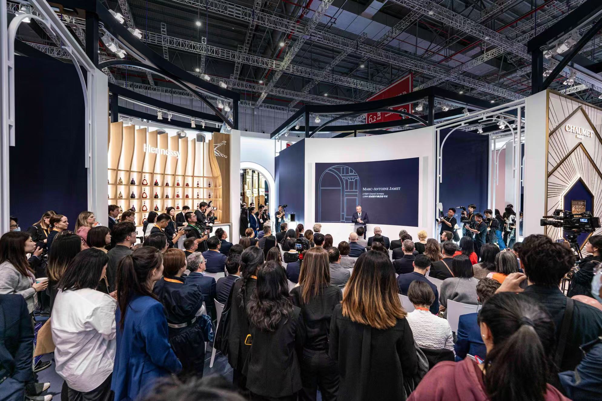 在昨天举行的LVMH集团进博展厅揭幕仪式上,轩尼诗总裁兼首席执行官Laurent Boillot、宝格丽首席执行官Jean-Christophe Babin、LVMH集团大中华区总裁吴越以及LVMH集团秘书长Marc-Antoine Jamet共同参与了一系列的主题对谈。