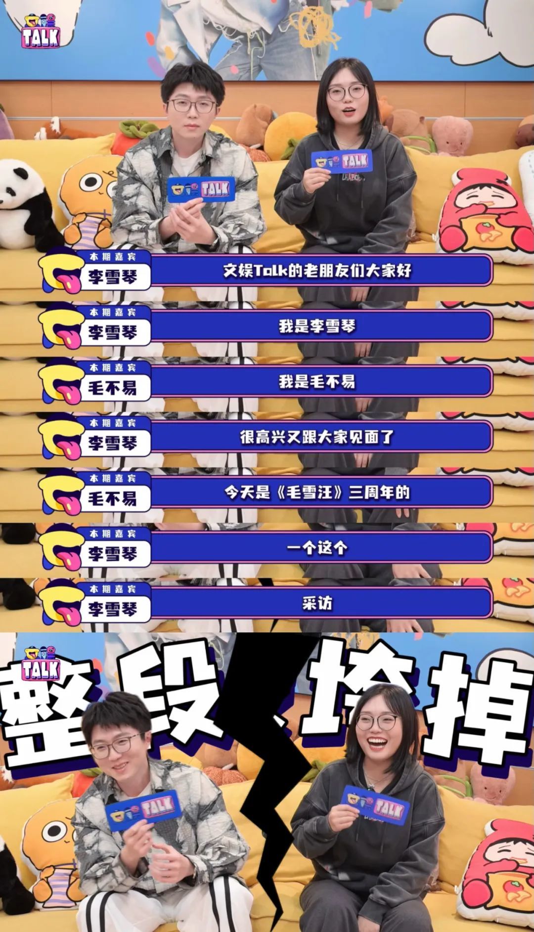 “今天是《毛雪汪》三周年的……一个采访!(毛不易、李雪琴,爆笑30秒~)”