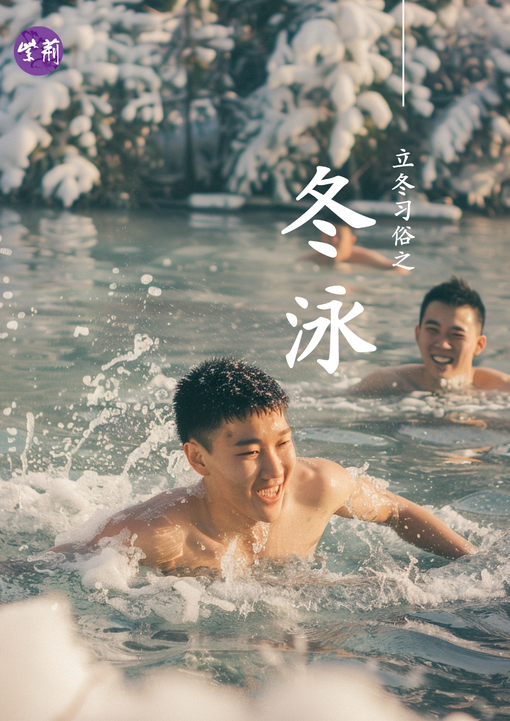 冬泳爱好者们会以冬泳的方式迎接冬天到来。