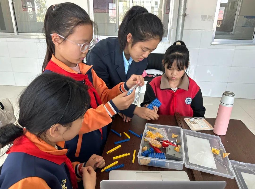 在“以漆为梦,以扇承梦”的课程上,来自海尔学校的高二人文与艺创团队学生刘雅琪讲解了精彩的漆扇技艺,在场的同学们无不为这一美轮美奂的中华传统技艺而赞叹;而在“机器人基础与拼装”课堂上,海尔学校高二年纪数学与科学团队的李欣泽等对机器人感兴趣的同学,一起为海尔希望小学的学生们带来了一款类似于电子宠物的简单机器人,现场有学生说到:“今天我是第一次接触这种课程,感觉很有趣!特别是拼装机器人的过程让我印象深刻,希望以后哥哥姐姐可以继续来这里给我们科普!”