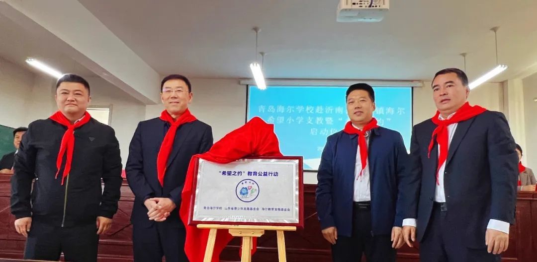启动仪式上,山东省青少年发展基金会资助部部长董晓峰、青岛海尔学校校长孙先亮、共青团临沂市委四级调研员王伟、沂南县蒙山彩蒙景区管委会主任范志光共同为“希望之约”教育公益行动揭牌,标志着各方将携手为沂南县的教育事业注入新的活力与希望,共同为乡村基础教育贡献力量。