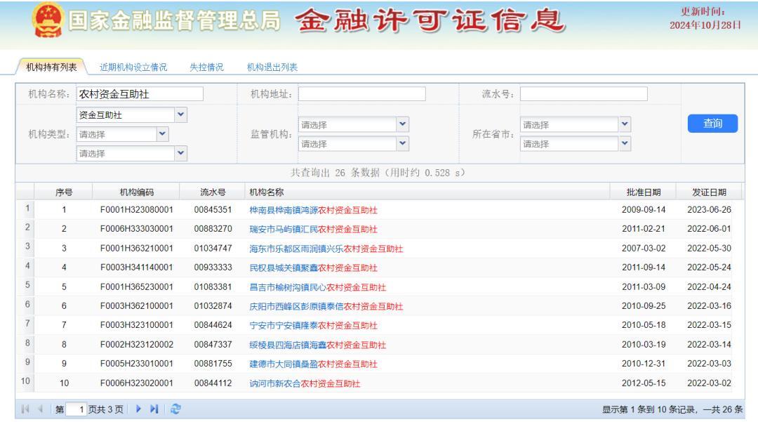 柒财经查阅国家金管局数据,截至发稿前,农村资金互助社的“正规军”队伍仅剩26家,10年间减少近半。