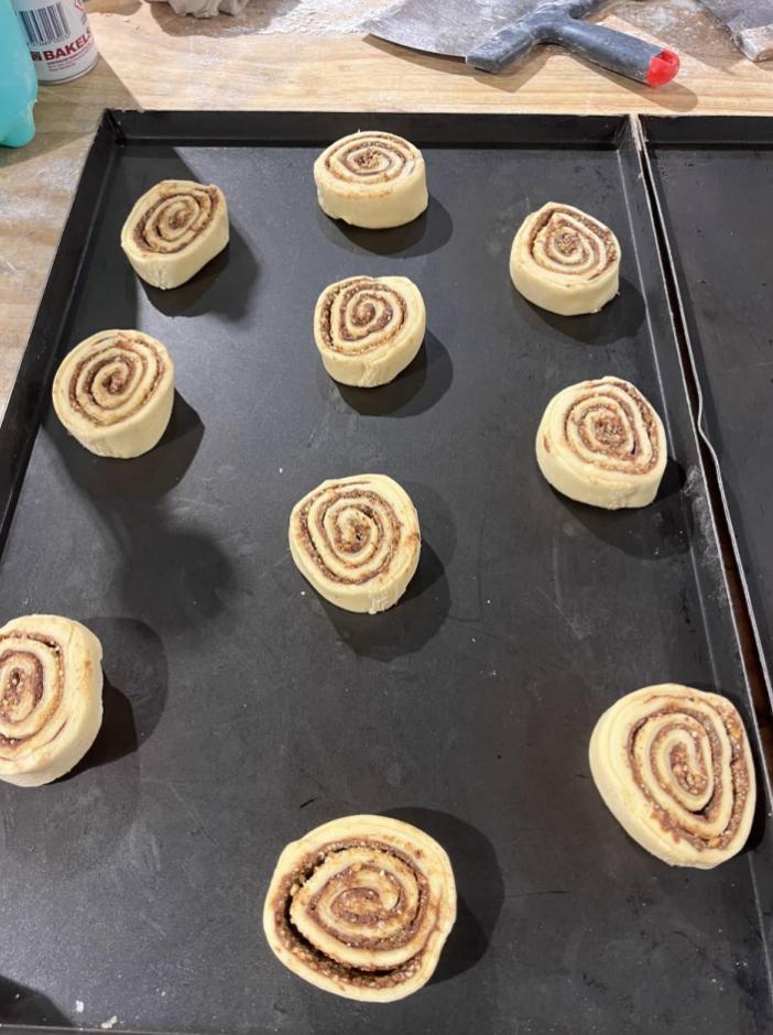 燕麦在给肉桂卷涂上蛋液(受访者供图)