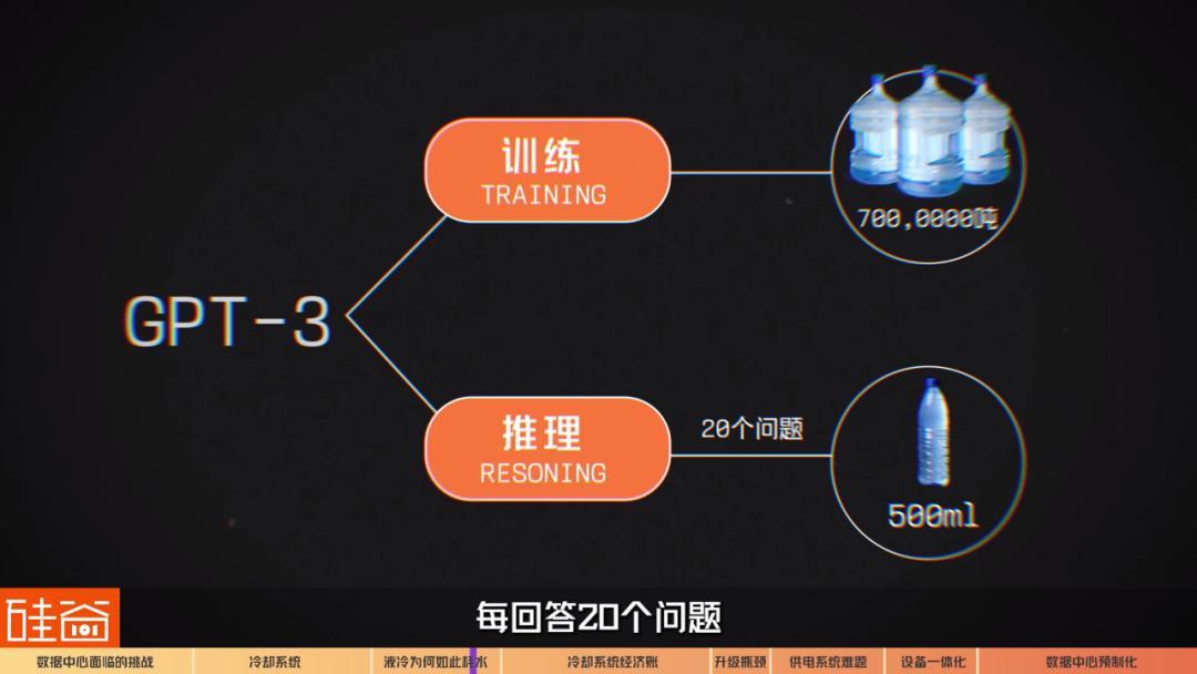而GPT-3在训练期间消耗了700万吨水,后续的推理阶段,每回答20个问题,就相当于倒掉了一瓶500毫升的矿泉水。