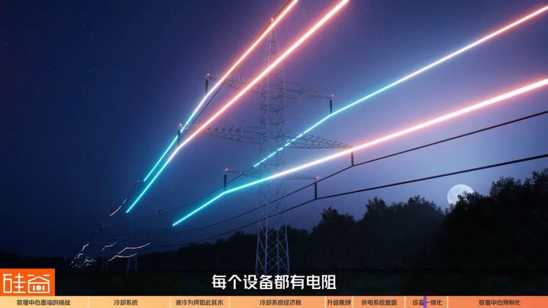 众所周知,每个设备都有电阻,电能在一层层设备的转换中,总会伴随着能量损失,如此一来为了满足服务器机柜的电能需求,前端的供配电设备需要留有更多冗余、占据更大面积。